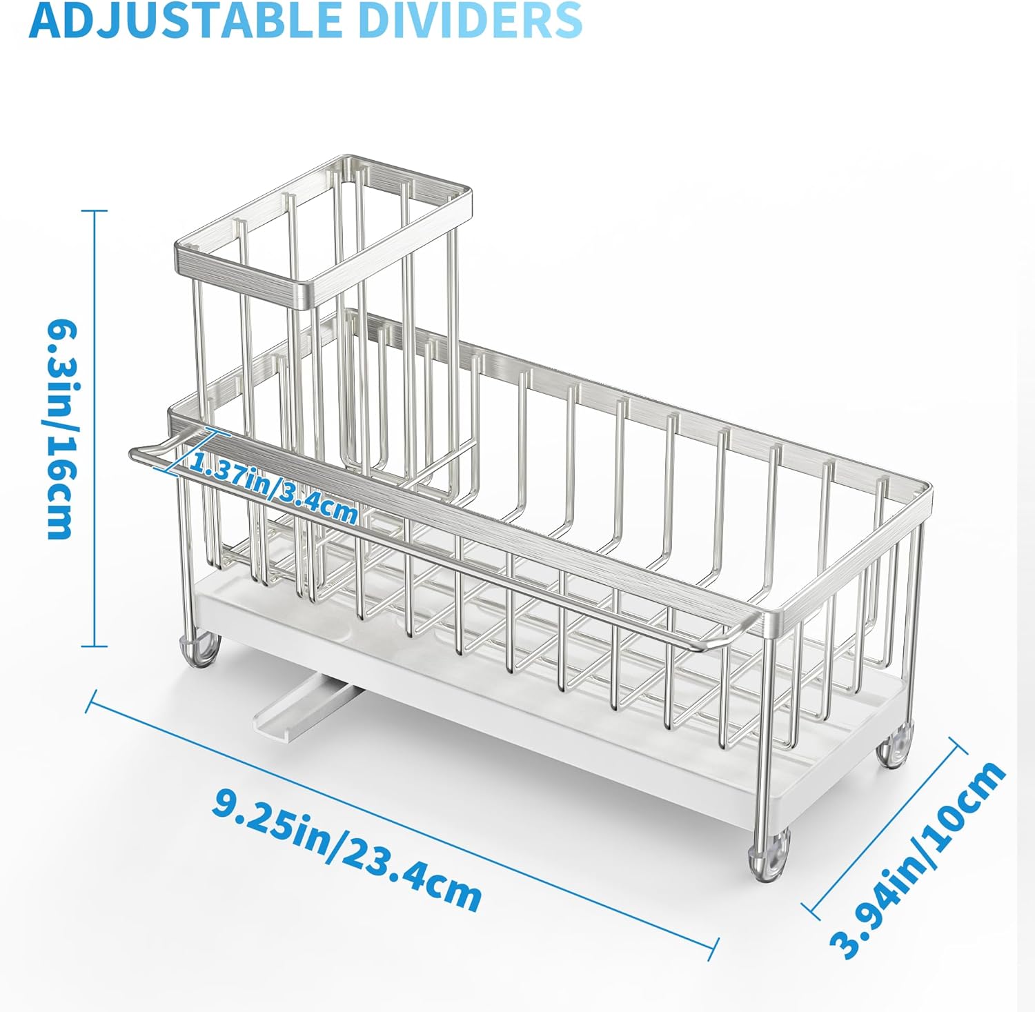 • Cisily Stainless Steel Sponge Holder for Kitchen Sink with Towel Rack, Sink Caddy with Kitchen High Brush Holder, Organzier Rustproof 304 Stainless Steel Dish Organizer Divider, Soap Dispenser Storage
