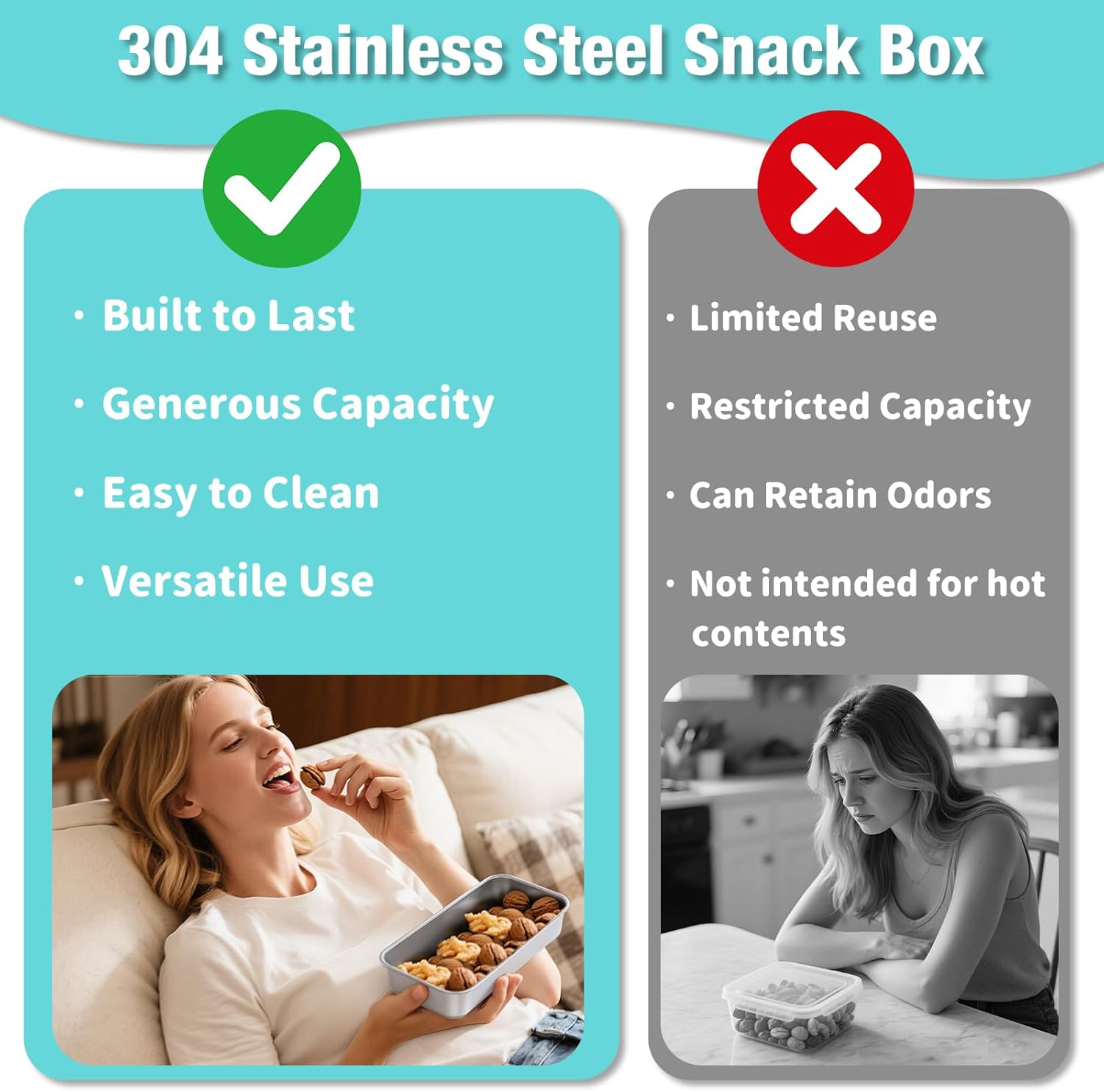 • Premium 304 Stainless Steel: Made from food-grade 304 stainless steel that resists rust, stains, and odors. The smooth interior is top-rack dishwasher safe for easy cleaning and a healthier alternative to plasti