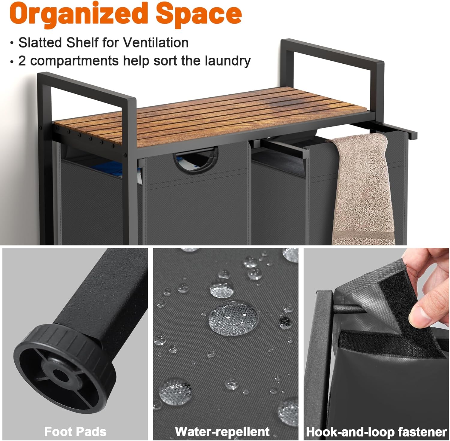 • Construction Design - With 4 adjustable feet, you will not have to worry about stability, and it is also adaptable to different spaces. Adjustable feet protect your floor from scratches. Strong steel frame and water-resistant wood top offer stable support. This laundry hamper comes with detailed instructions manual and all hardware needed, it is easy to assemble.