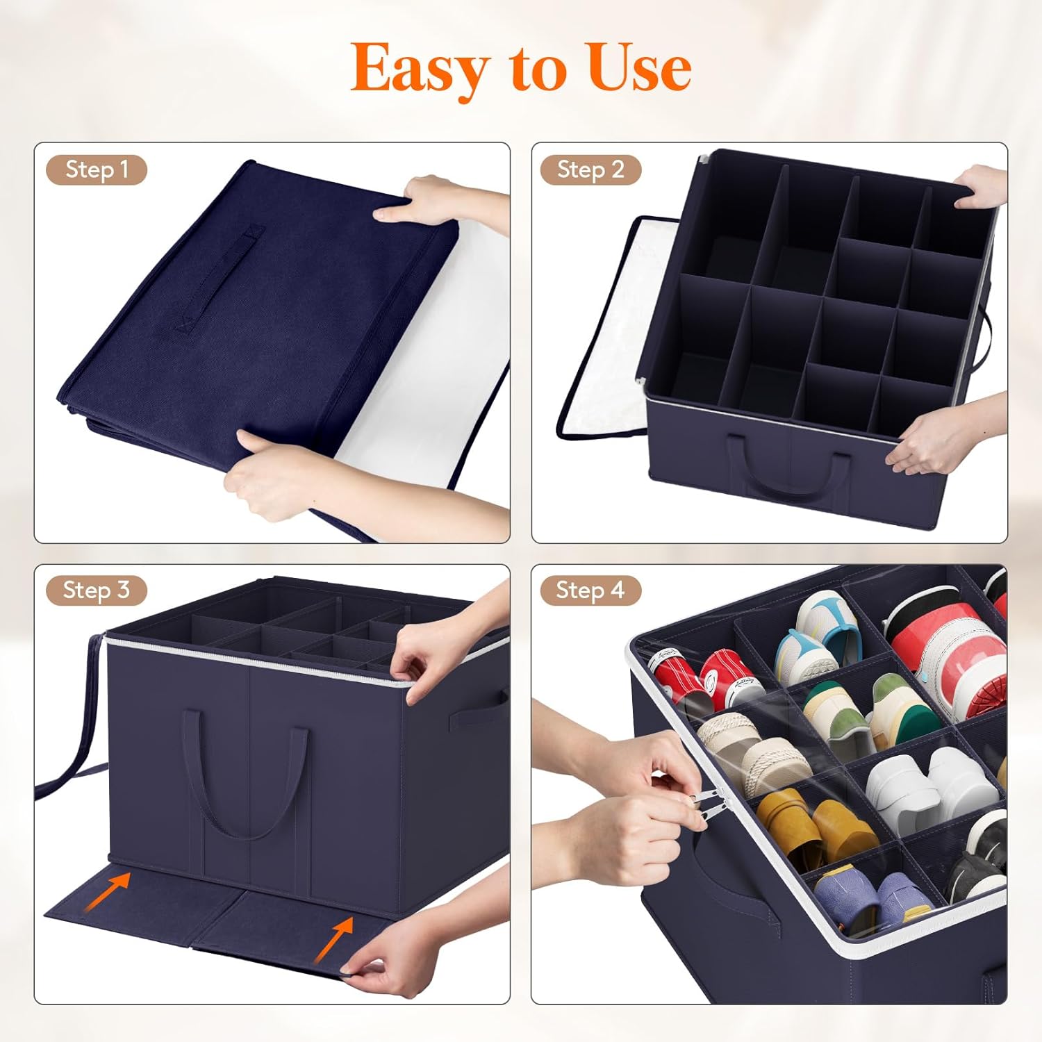 Lifewit Shoe Storage Organizer for Closet Fits 12-16 Pairs, Fabric Large Shoe Box Storage Containers with Clear Cover, Foldable Bins Fit for Boots Heels Sneakers 17"(L) x 17"(W) x 12.5"(H) 3 Pack Blue