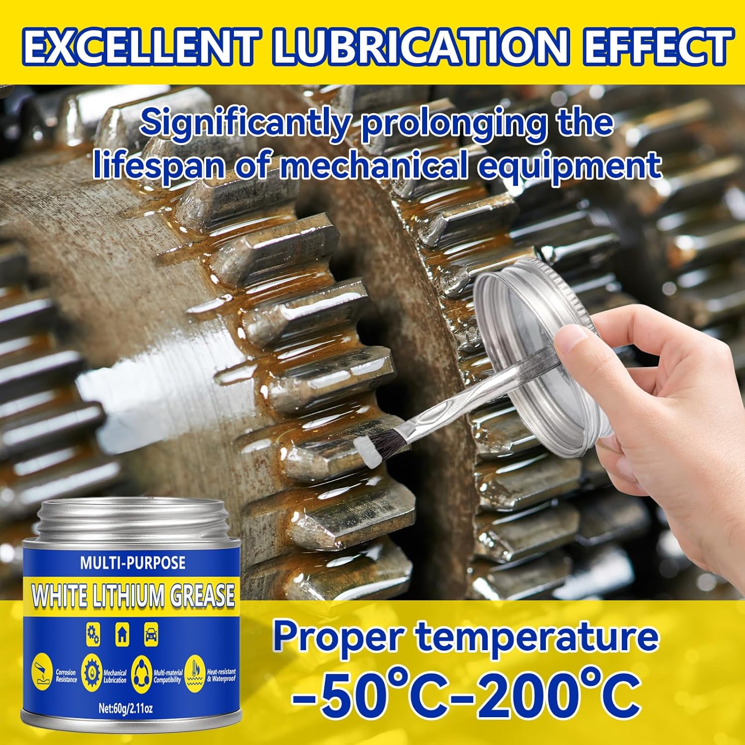 • Superior Lubrication: White lithium grease provides excellent lubrication, reducing metal-metal friction for smooth operation of hinges, bearings, gears, and chains. Lithium grease keeps your equipment running quietly and efficiently
