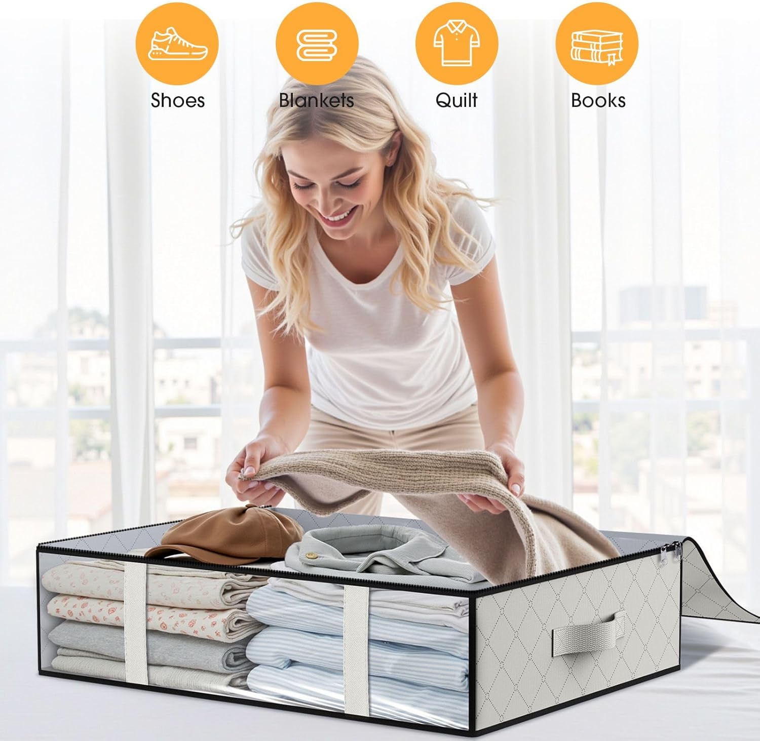 • Multifunctional Storage Organizer:StorageRight under bed storage containers for organizing fits perfectly under your bed. From blankets and pillows, to out-of-season clothes and shoes, to books! These storage bags have sturdy construction and can handle all types of storage needs