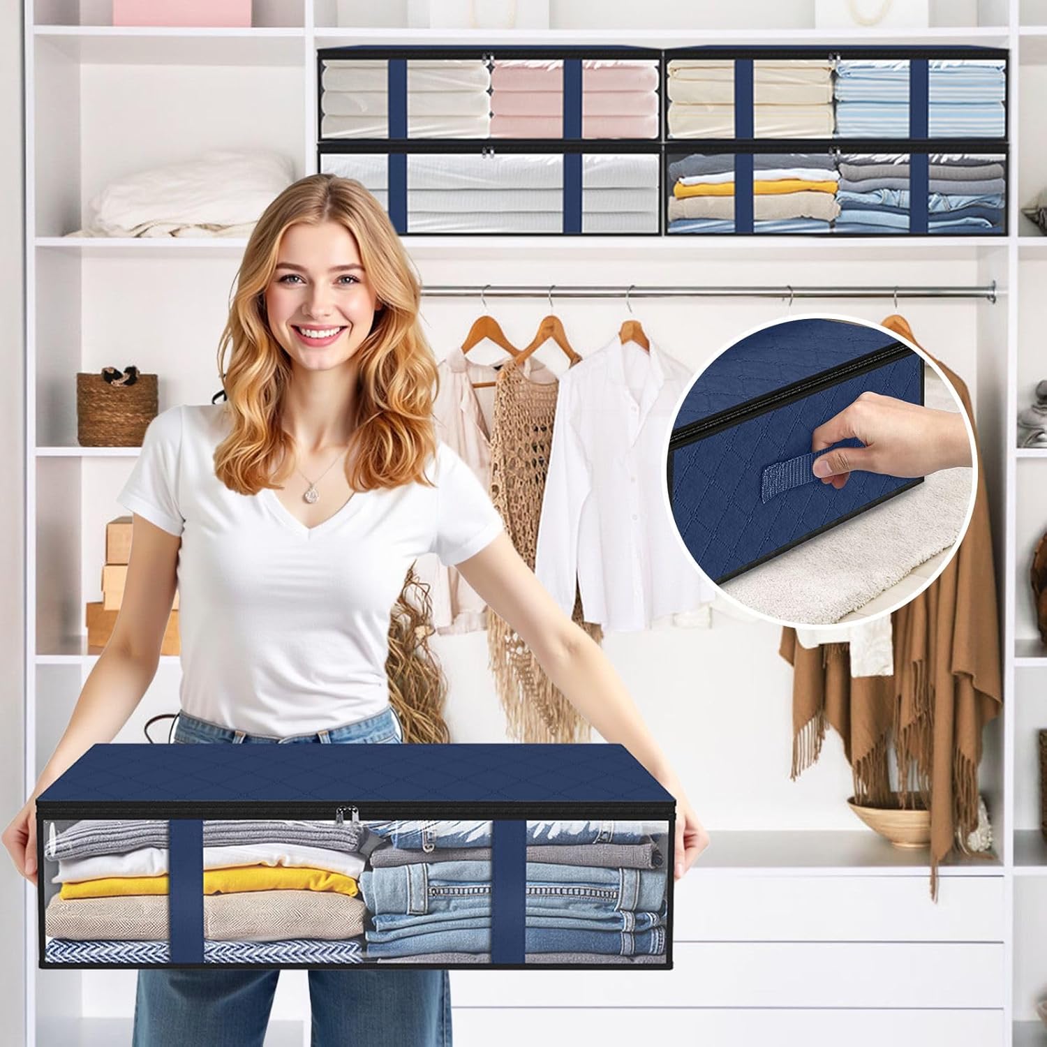 StorageRight Under Bed Storage Bins, 6-Pack 40L Foldable Fabric Storage Bags with Transparent Window, Breathable Organizer for Clothes/Blanket/Comforter/Quilt, Blue