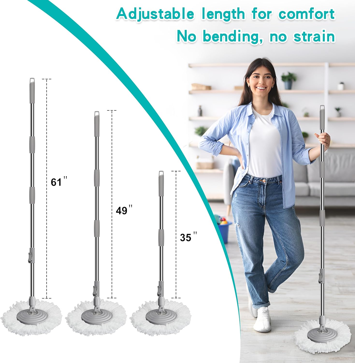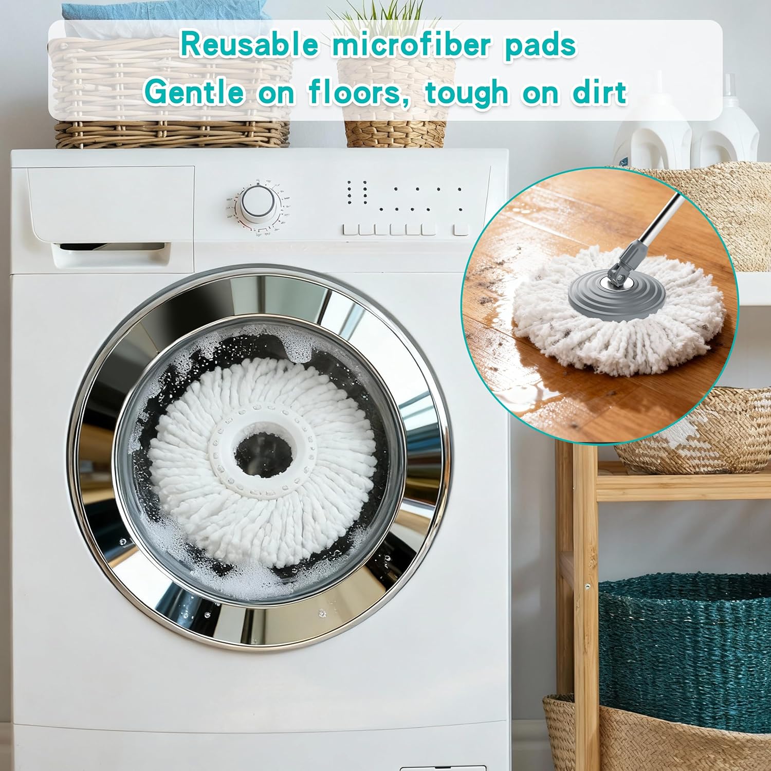 • Durable Spin Mop with Microfiber Mop Heads & 4-Chamber Separation-Built for durability, the system includes 6 washable microfiber mop heads for multi-surface use. The patented 4-chamber design keeps clean and dirty water fully separated, ensuring a truly hygienic clean from start to finish.