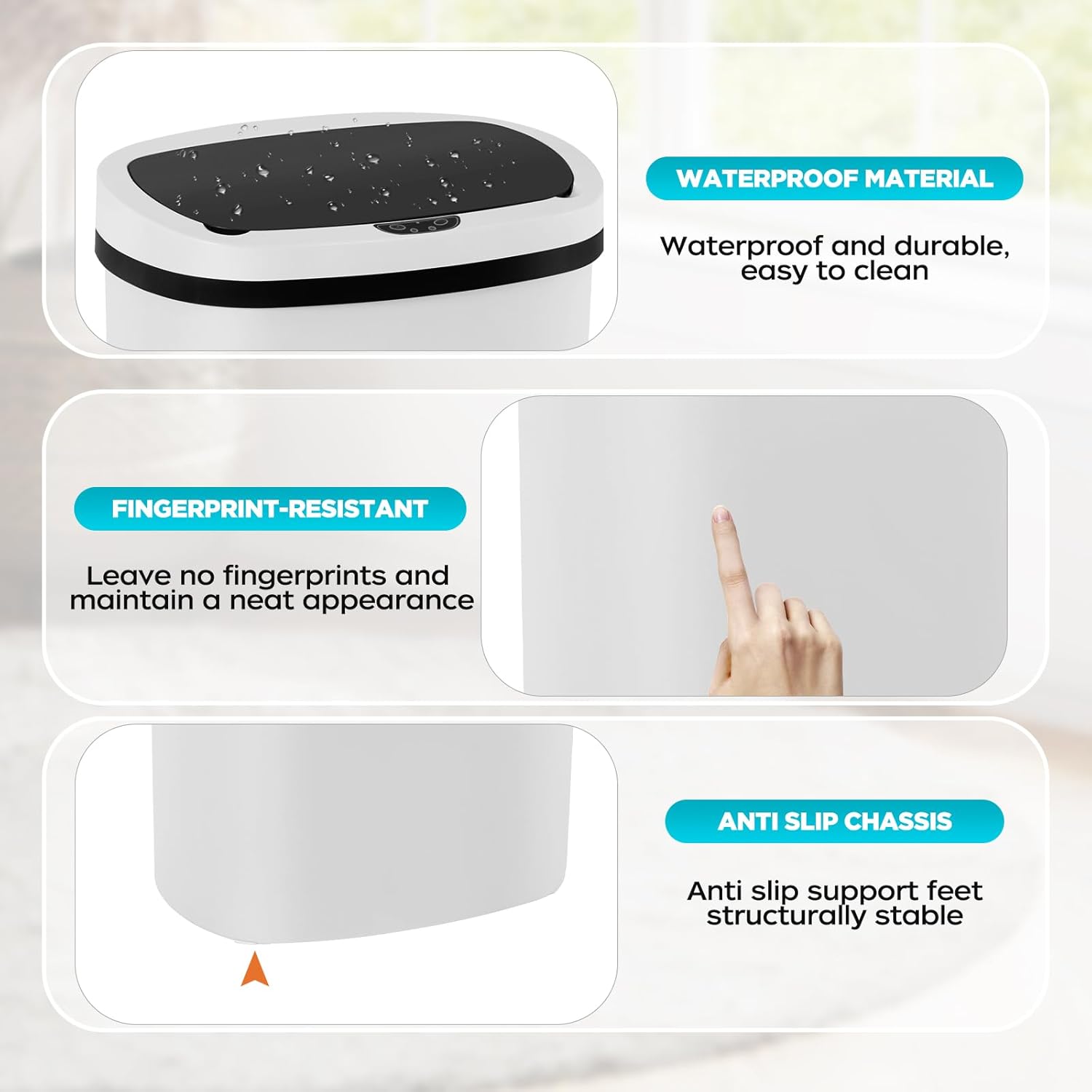 • Silent Operation: Designed with noise reduction in mind, our touchless trash bin operates quietly, offering a seamless experience in any setting, including bathrooms. The gentle opening and closing mechanism ensures a peaceful environment for you and your family.