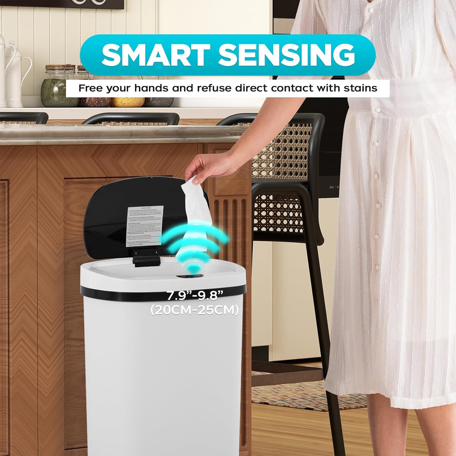 • Touchless Convenience: Experience the ultimate in hygiene with our Automatic Motion Sensor Bathroom Trash Can. Easily open the 13 Gallon Touchless Trash Bin using knee or hand gestures, eliminating contact and maintaining cleanliness in your home.