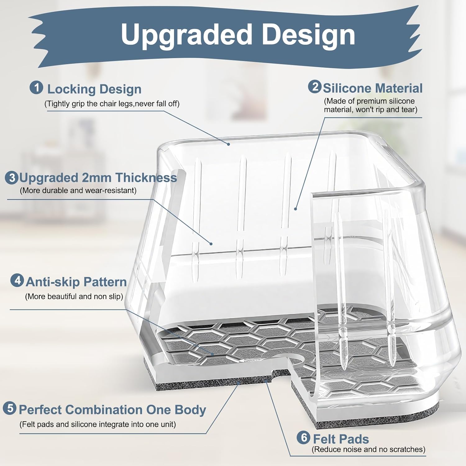 • ✅【Comprehensive Improvement】The chair leg floor protectors use special technology to combine the felt and silicone into one inseparable piece, which prevent the felt pad from falling off during use. We chose the premium quality silicone material which bonds the felt pad better, and won't tear easily when stretched.