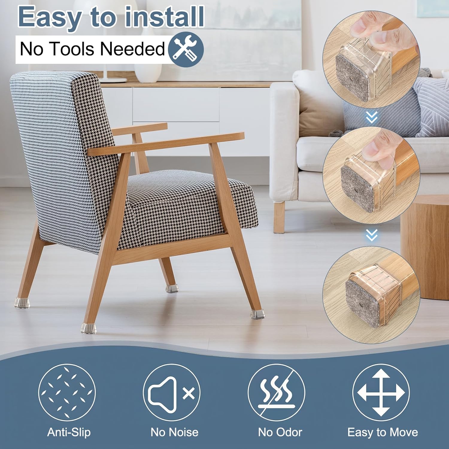 • ✅【Easy to Install】The non slip furniture slider is easy to install, without the use of tools. Just slip the chair feet protectors over your chair legs, and they’ll fit snuggly to stay in place! Much better than the felt or ones which have to be nailed on!