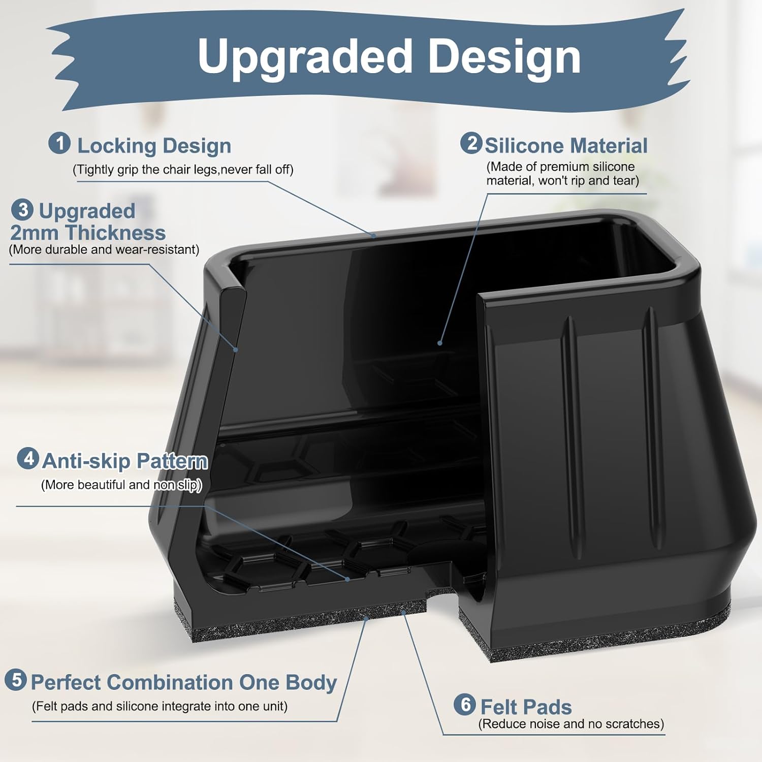 • ✅【Comprehensive Improvement】The chair leg floor protectors use special technology to combine the felt and silicone into one inseparable piece, which prevent the felt pad from falling off during use. We chose the premium quality silicone material which bonds the felt pad better, and won't tear easily when stretched.