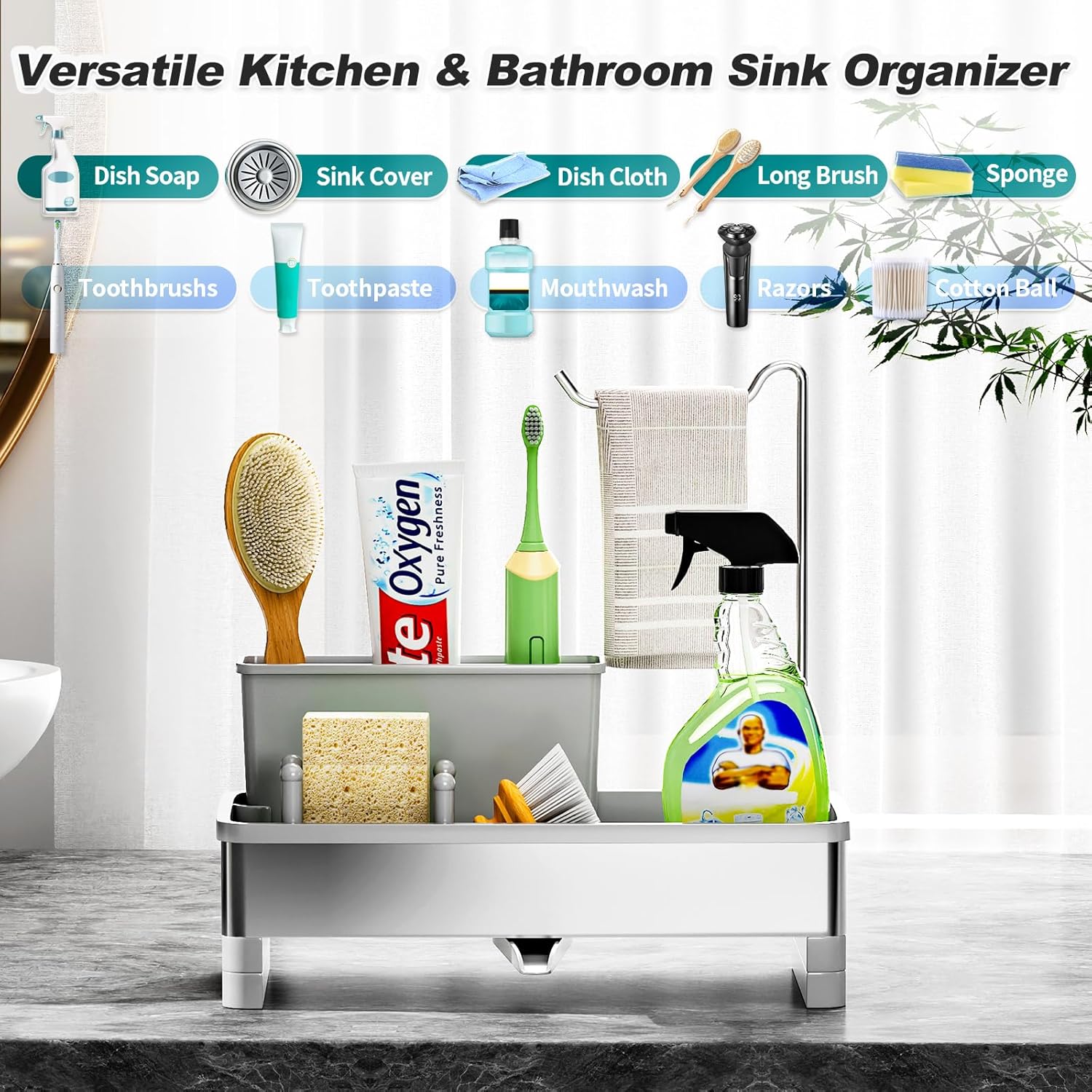 - 【Removable Brush Holder & Dish Cloth Hanger】It not only serves as a sink sponge holder, but also comes with a removable brush holder that can accommodate brushes of different sizes. It also features a towel rack that allows your dish towels to hang and dry easily. Our sink caddy allows you to organize and store kitchen cleaning supplies more efficiently, saving space in your kitchen.