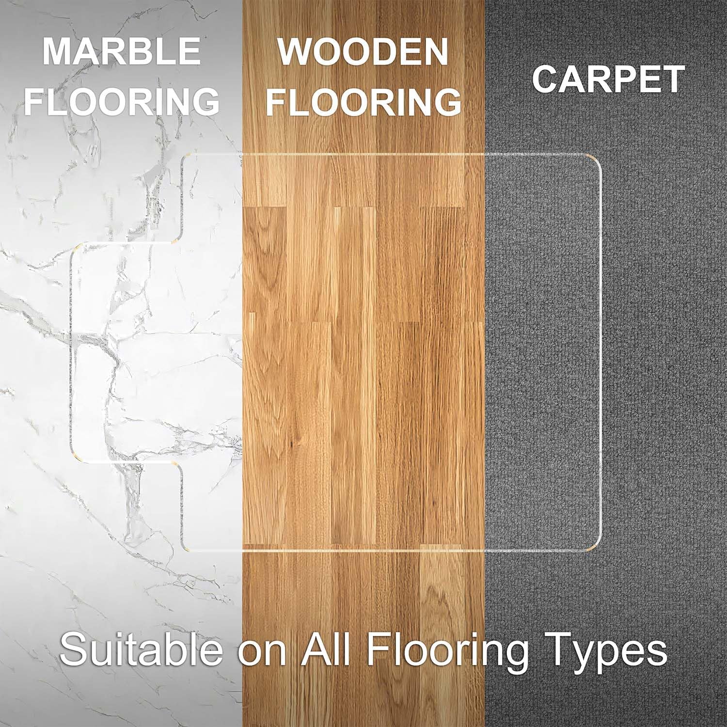 - 【Crystal Clearly】This clear office chair mats with lip transmittance is 92%-95% looks like invisible, which more than other material glass 85%-88%, and PVC 50-80%. lts almost complete transparency won't cover the floor decoration. It also beautifully displays and protects the floor below with its virtually transparent finish while remaining perfectly in place