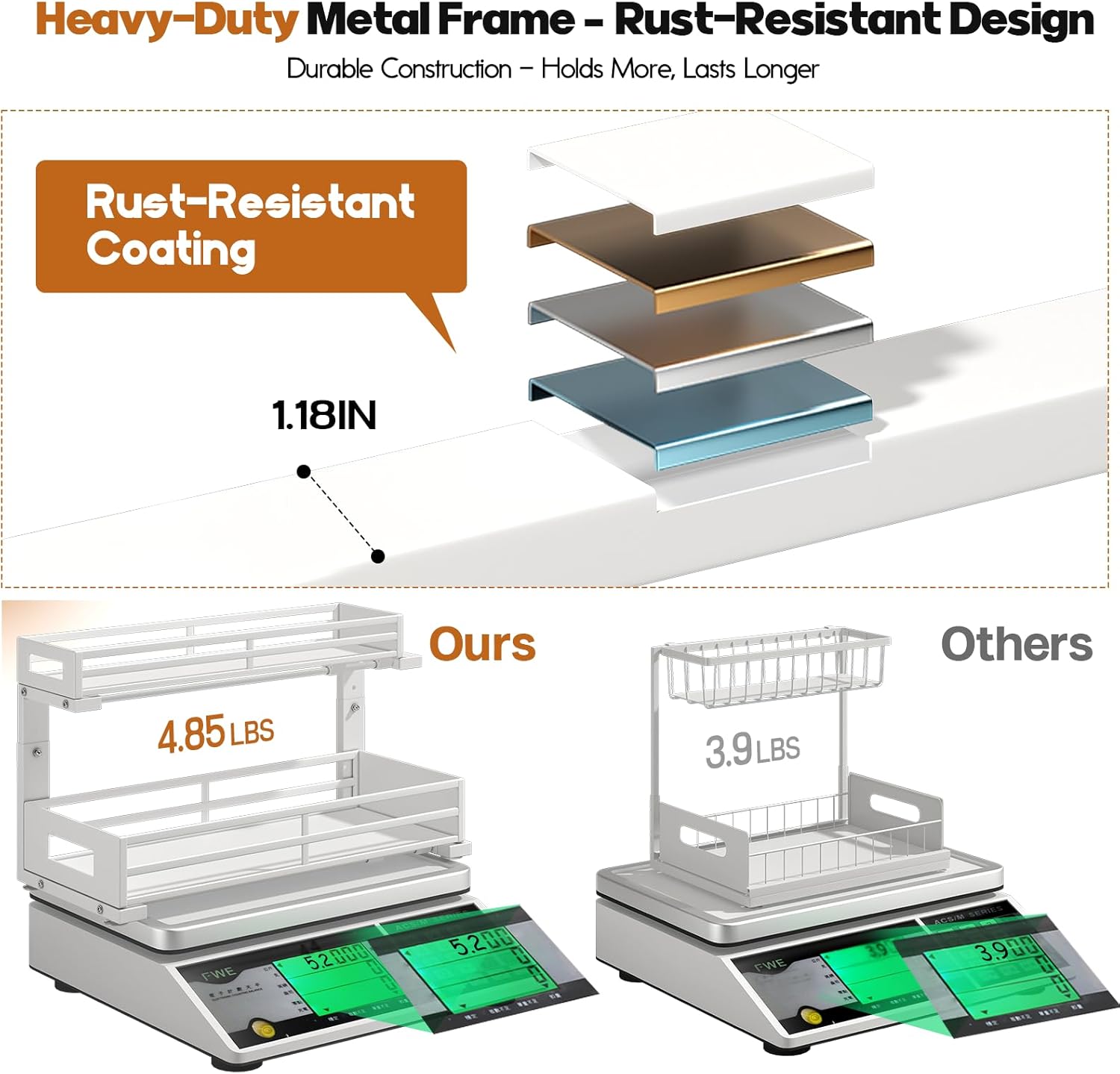 - 【Sturdy metal sheet frame& Rust-Proof】The under sink organizer is built from solid metal sheets with a strong frame and superior rust-resistant design, making it durable and ideal for long-term use in humid areas like kitchens,bathrooms and Laundry Room.