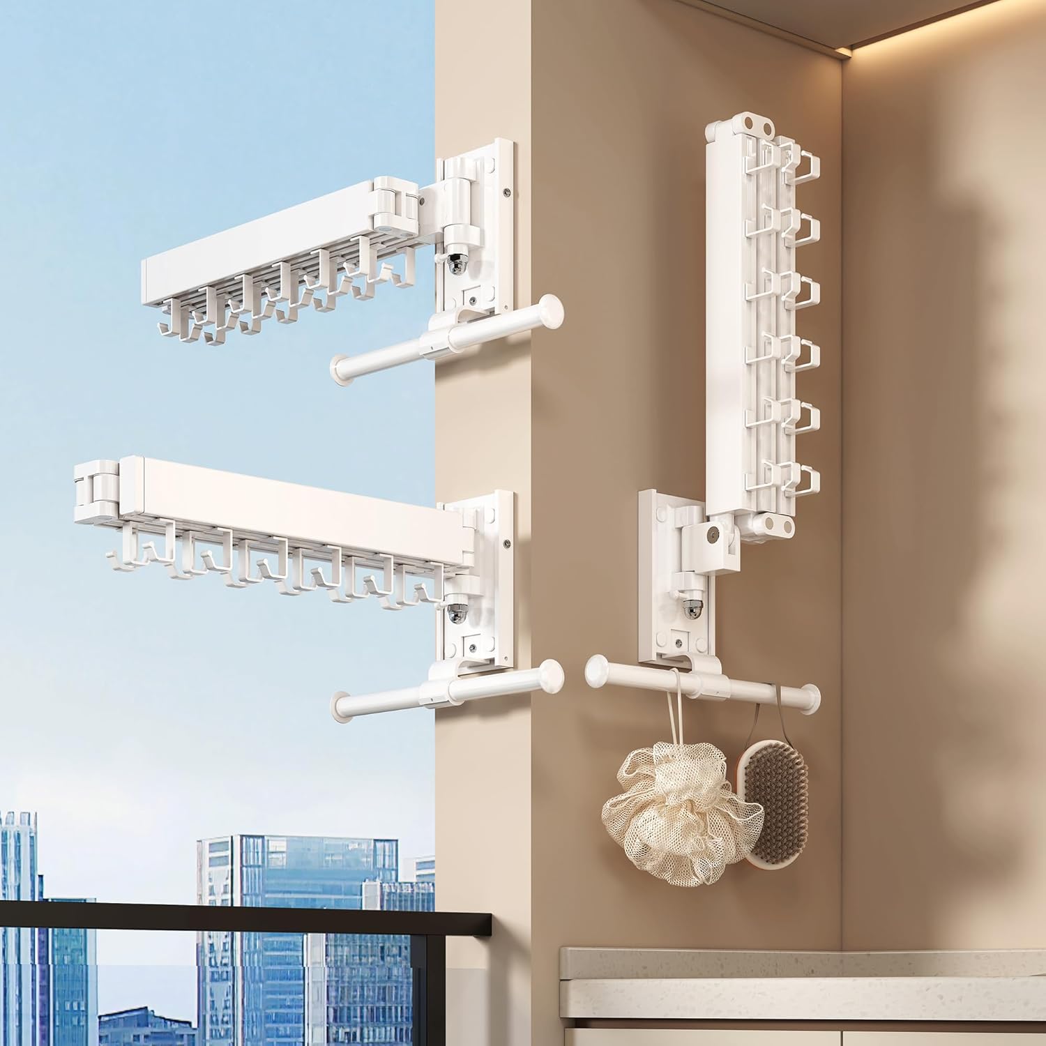 • Wall Mounted Collapsible Design – Space-Saving Drying Solution: This upgraded wall mounted clothes drying rack folds left, right, and even upward, maximizing your space. Perfect for balconies, laundry rooms, or small apartments where every inch counts.