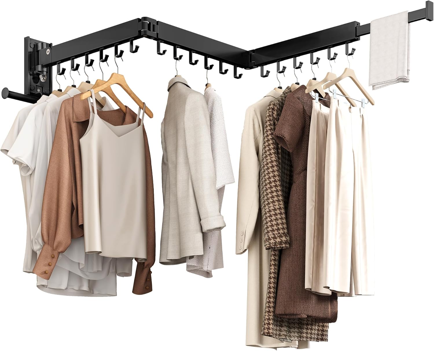 Wall Mounted Collapsible Clothes Drying Rack, Space-Saving Laundry Drying Rack Clothing Hanger, Durable Foldable Design Extends Left, Right & Up for Upgraded Versatility