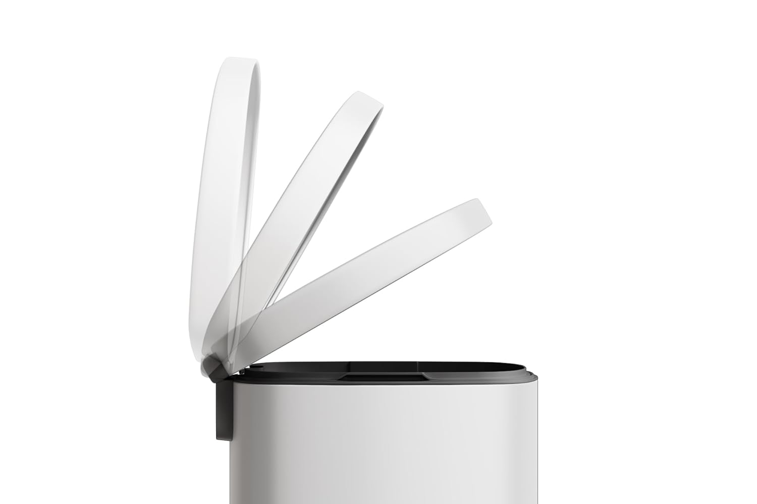 - Material : Powder-Coated Stainless Steel Bin, Polypropylene Plastic Inner Bucket, ABS Lid, Brushed Stainless Steel pedal Powder-Coated Stainless Steel Bin, Polypropylene Plastic Inner Bucket, ABS Lid, Brushed Stainless Steel pedal