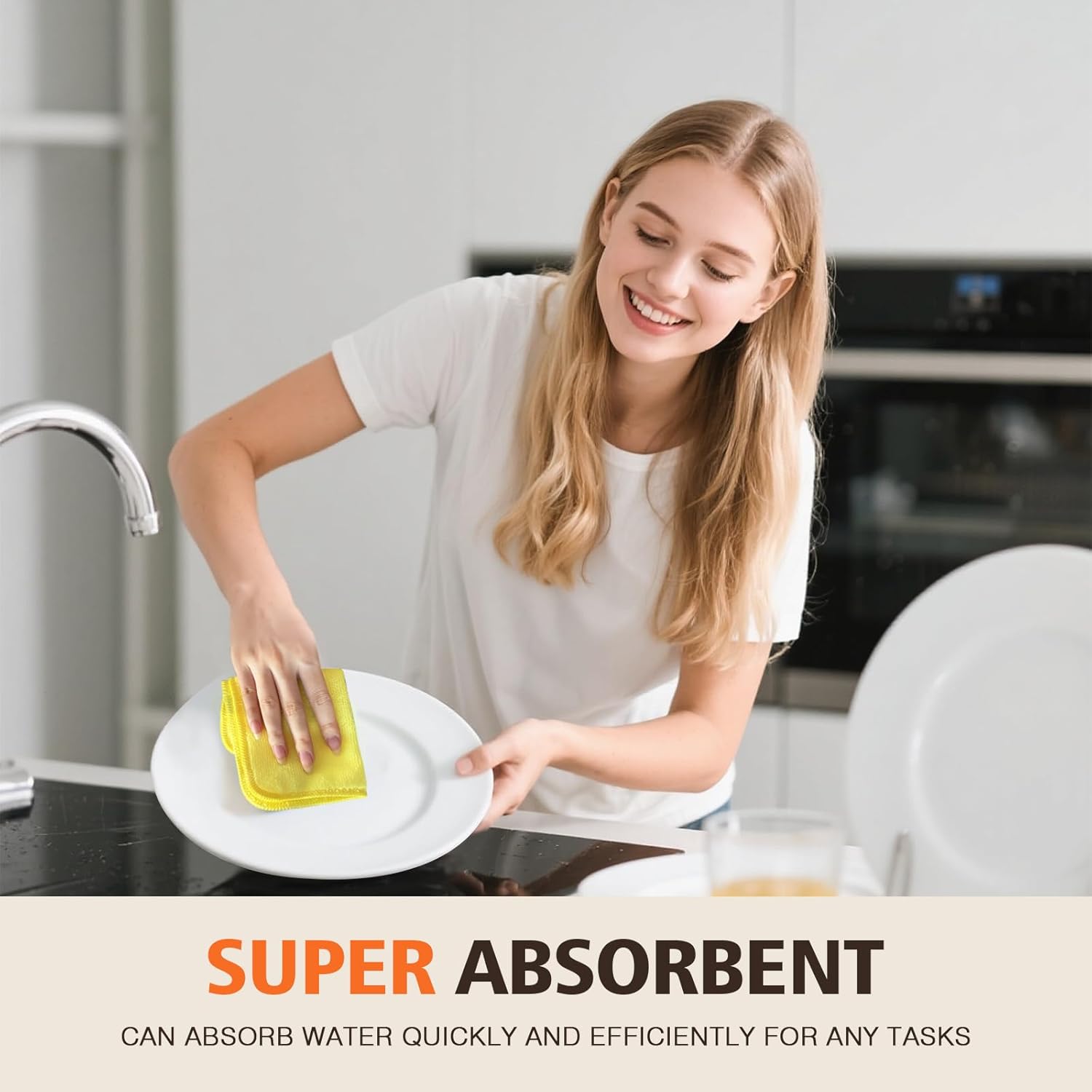 • ABSORB LIQUID QUICKLY WASHCLOTH FOR KITCHEN: These dish cloths are super absorbent, dry quickly, and any stains or grime from wiping counters washes right out with warm sopy water. Works well for buffing hard water spots from wet dishes