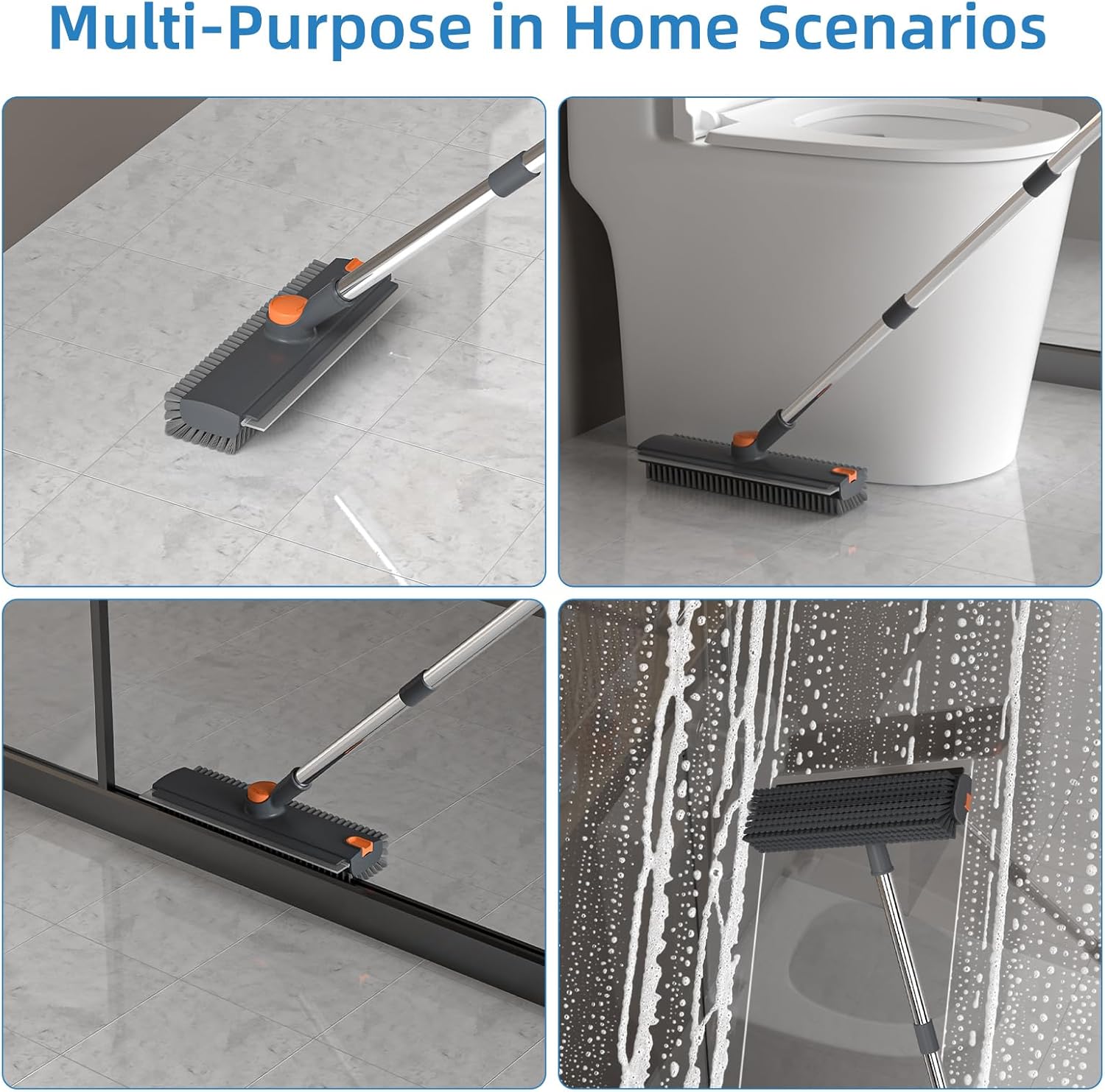 • 📏 Adjustable Extended Handle: Customize your reach! The sturdy stainless-steel handle extends from 16" to 52", so you can clean floors, windows, and showers standing up—no bending or back pain. addition, the handle top has hole for hung in any location