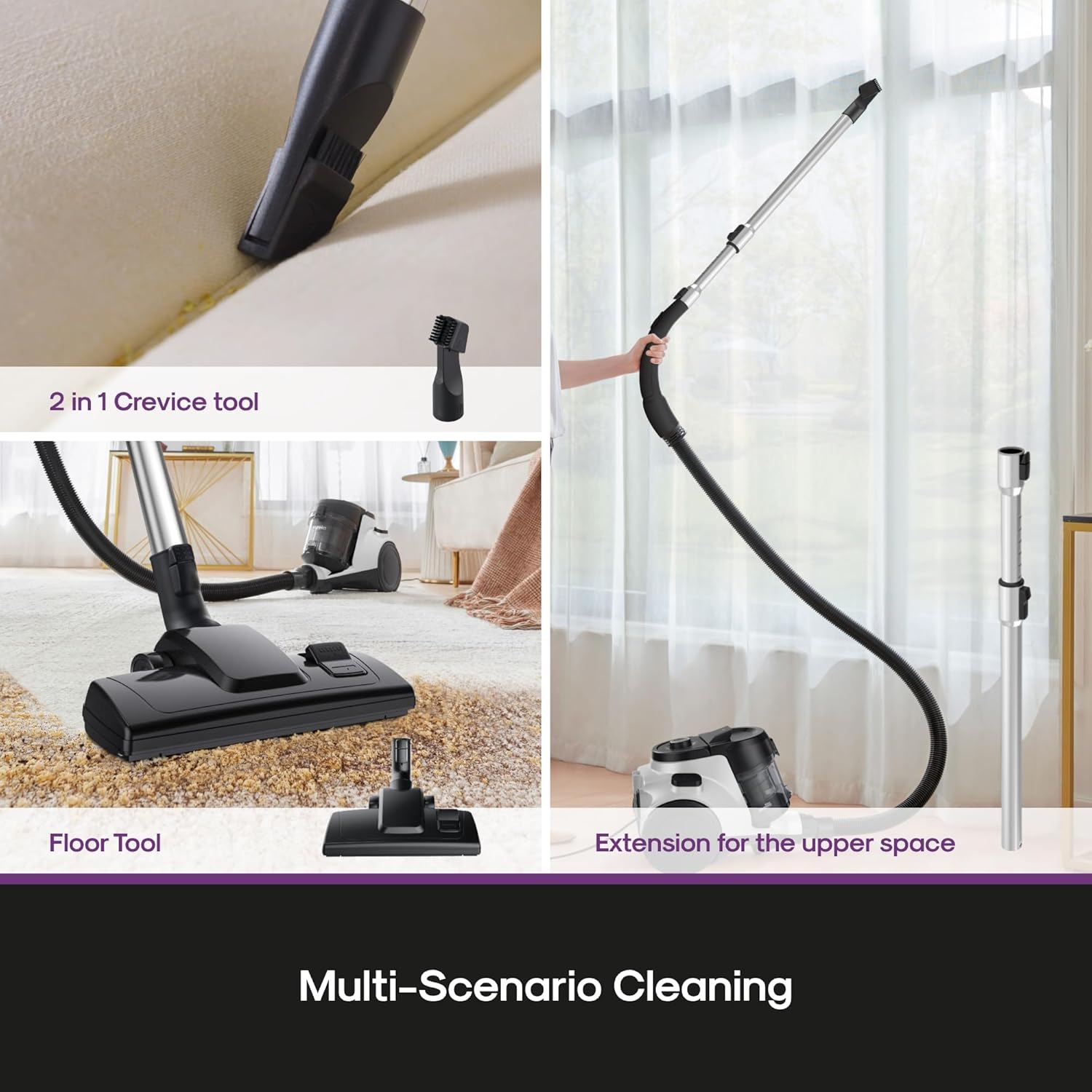 • Innovative Multi-Surface vacuum: Deep clean with the whirlwind canister vacuum.This vacuum features an integrated airflow control on the handle that can be easily switched at your fingertips.Dust cup capacity - 1.2 liters.Voltage:120 volts.Noise Level: ≤82 dBA