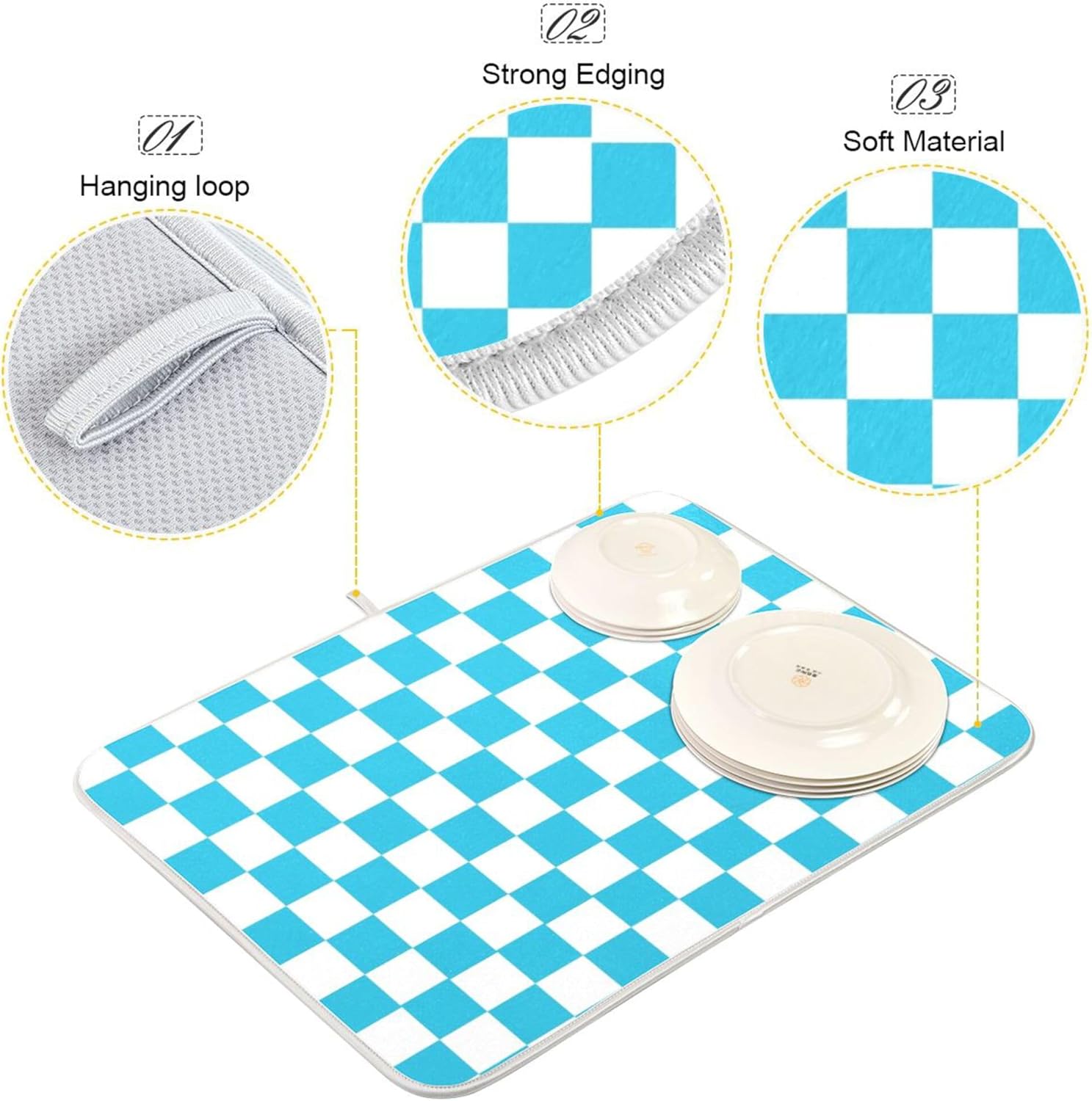 Turquoise Chessboard Dish Drying Mat for Kitchen Countertop 16x18 Teal Plaid Checkered Rectangle Small Drying Mat Reusable Quick Dry Dish Sink Absorbent Mats Easy Clean Decorative Home Essentials