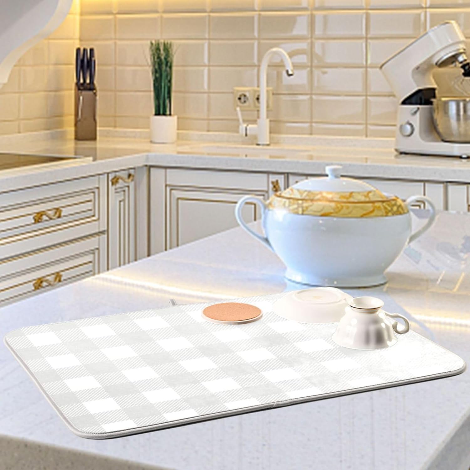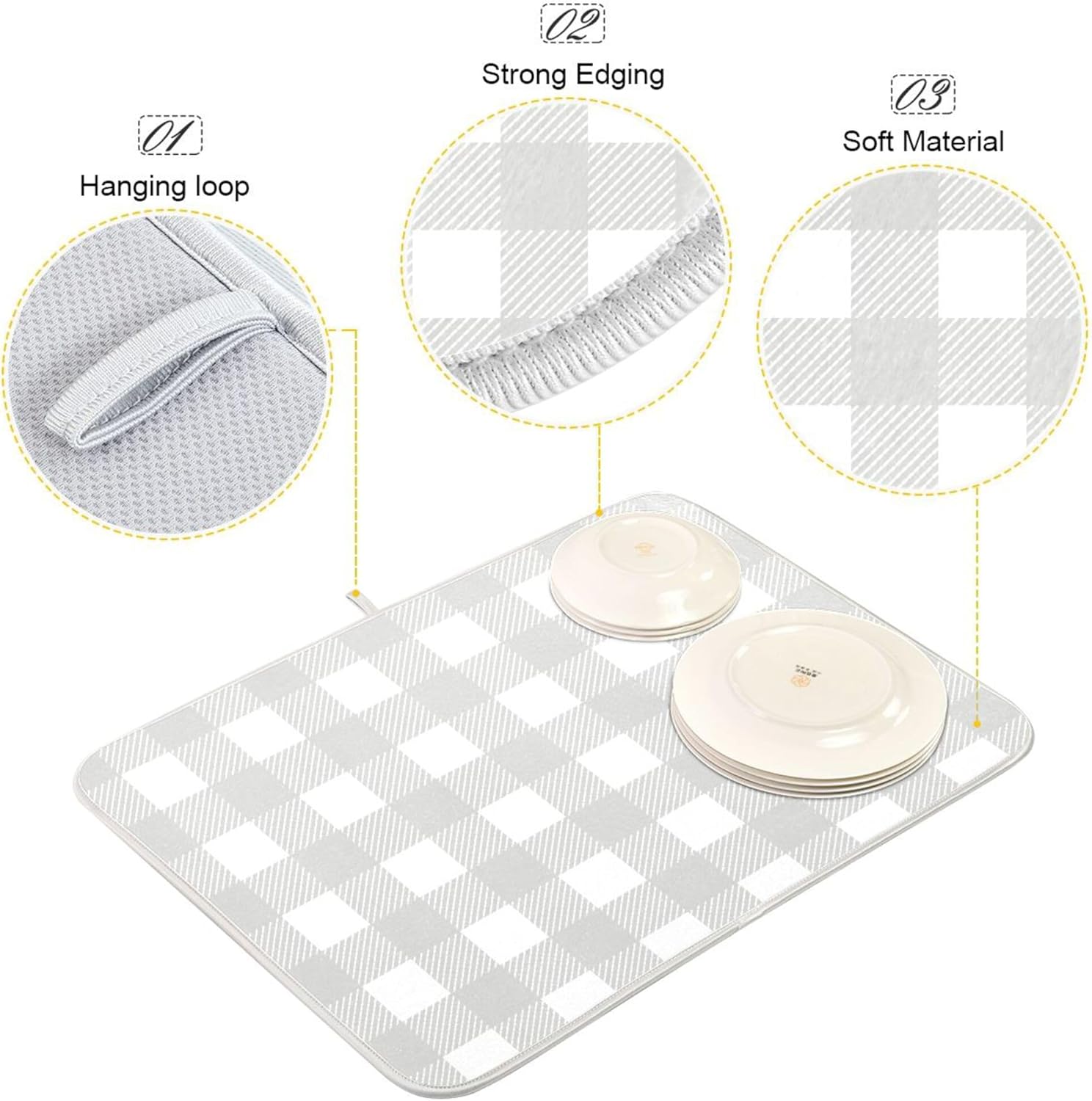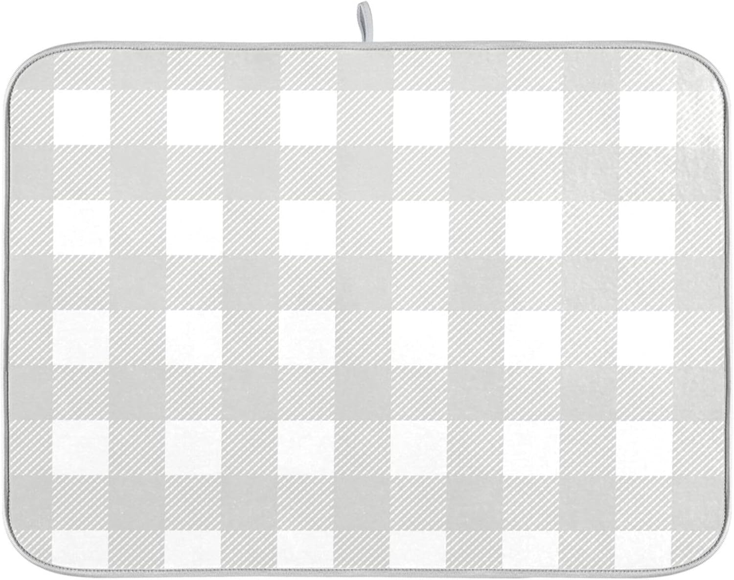 Buffalo Plaid Gray White Dish Drying Mat for Kitchen Countertop 16x18 Chessboard Rectangle Small Drying Mat Reusable Quick Dry Dish Sink Absorbent Mats Dishwasher Easy Clean Decorative Home Essentials