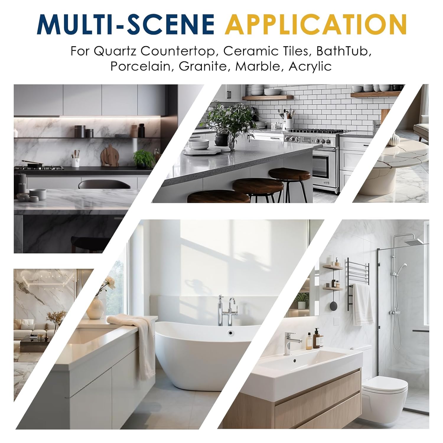 - 【High Quality 4 Color Filler Material】 - Offer 4 color filler material (white, beige, gray, transparent), which are safe, durable and leave no trace. You can choose the best match color to repair different areas, such as countertop, sinks, bathtubs, toilet, floor, home kitchen etc. While using, there is no need to adjust the proportion.