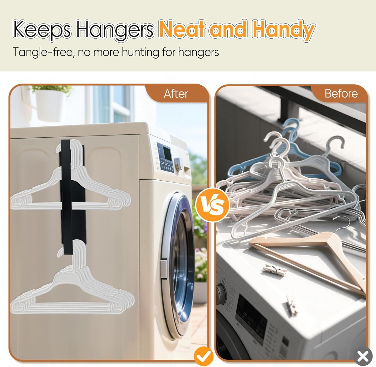 • Laundry Room Organization: Organize and store hangers, keep them neat and tangle-free, bringing order to your laundry space. Hangers stay within easy reach—no more bending or searching. Makes hanging clothes easier and streamlines your laundry routine