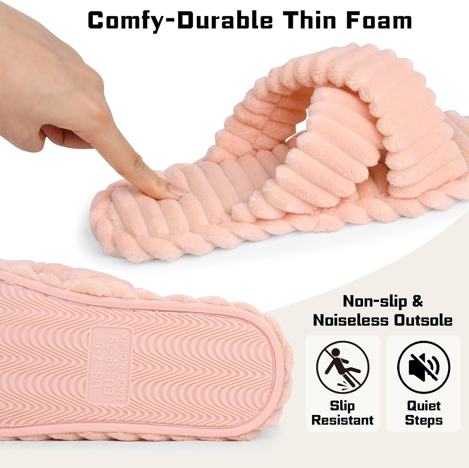 • ★Comfy-Durable Thin Foam - The durable comfy thin foam of bottom will perfectly fit the shape of your foot, firm yet yielding, will not only make you have the great wrapping sensation, but also provide cushioning and supporting for quiet, noiseless steps.