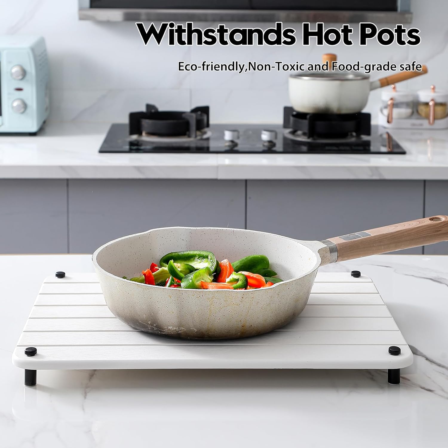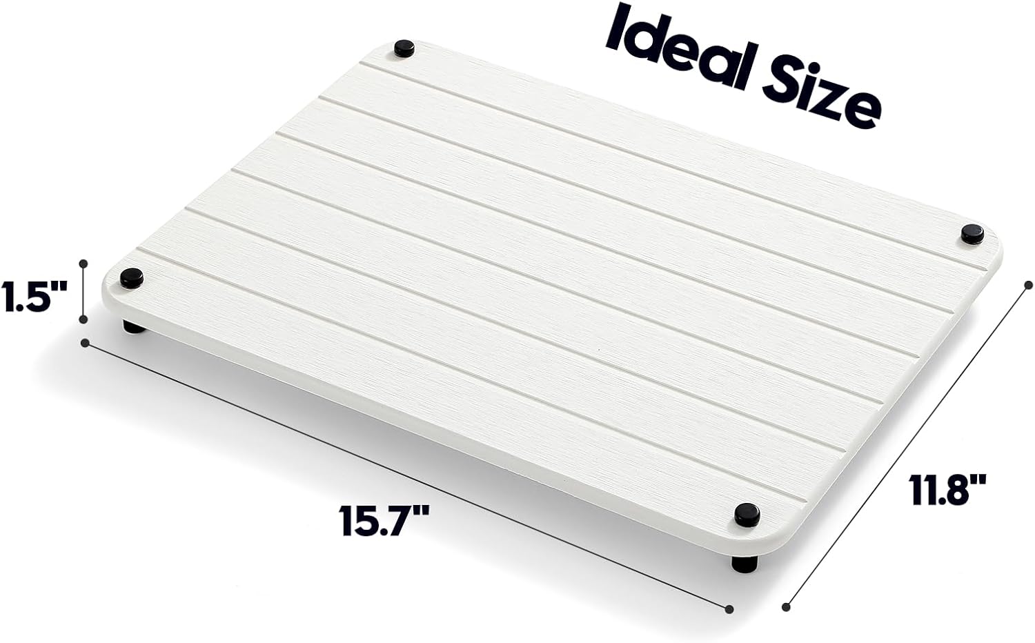 Stone Dish Drying Mat for Kitchen Counter, Water Absorbing Bathroom Tray Sink Organizer, Diatomaceous Earth Countertop Dish Rack Riser Sponge Holder Soap Dish, White, 16" x 12"
