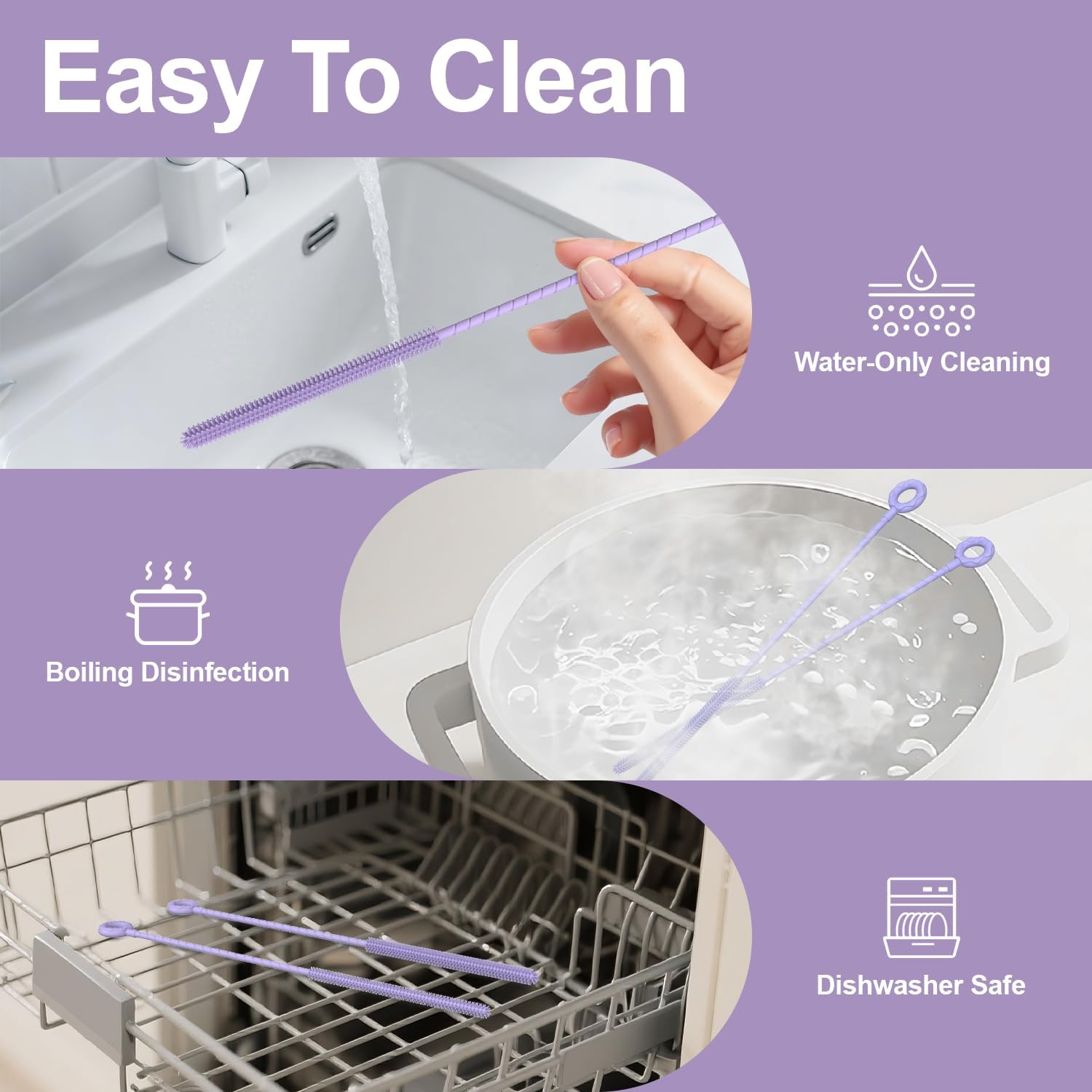 • Safe & Durable Silicone Bristles: Made from high-quality, food-grade silicone, BPA Free, our straw brush are gentle on straws (won't scratch) yet tough on buildup. The flexible Handle bend to scour every curve and corner for a thorough clean, and won't shed or break like bristle brushes.