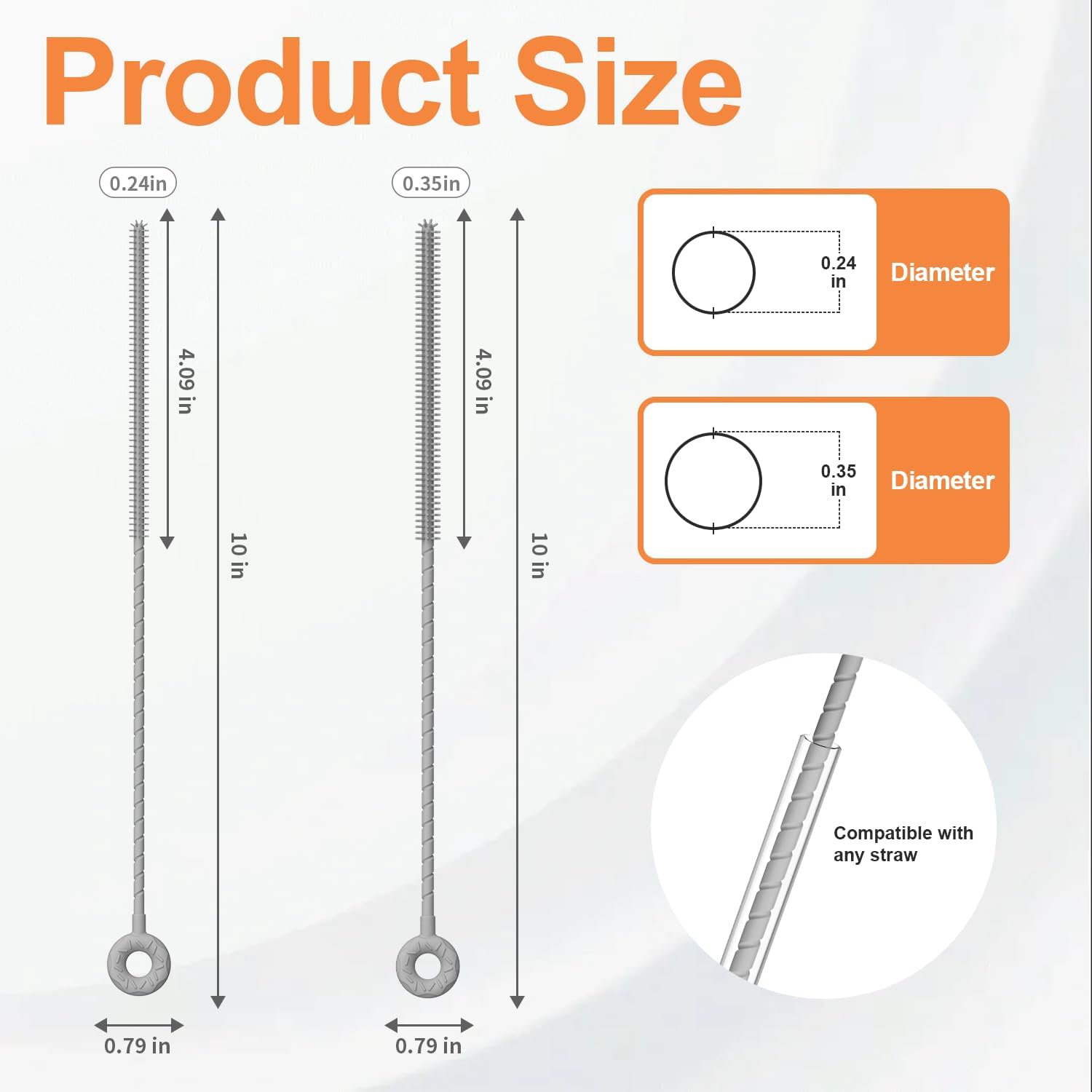 • Multi-Scenario Application: This silicone straw cleaner brush set features 0.24" (6 mm) and 0.35" (9 mm) diameters, 10" (254 mm) long, designed to perfectly clean both narrow reusable straws and wider straws, reaching deep inside to remove residue and grime.