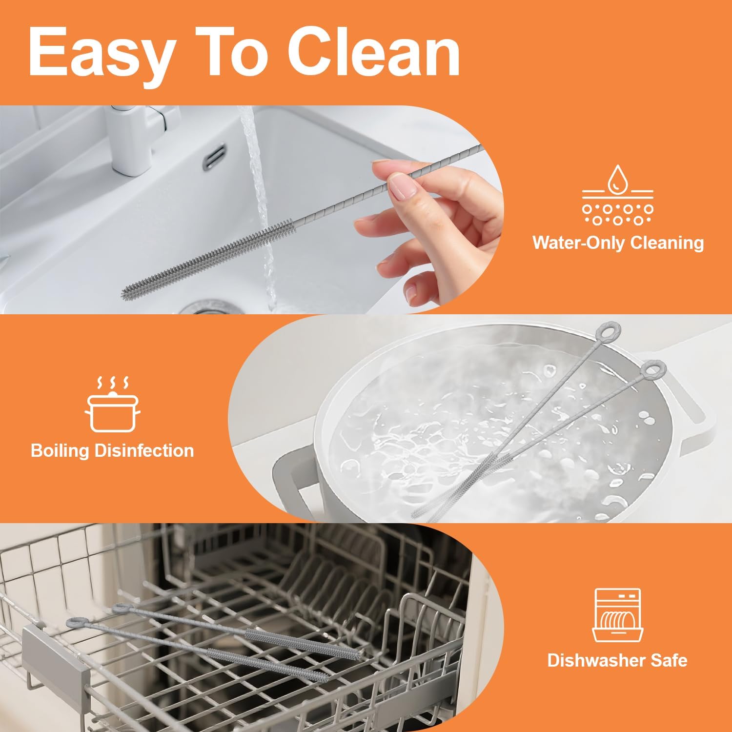 • Safe & Durable Silicone Bristles: Made from high-quality, food-grade silicone, BPA Free, our straw brush are gentle on straws (won't scratch) yet tough on buildup. The flexible Handle bend to scour every curve and corner for a thorough clean, and won't shed or break like bristle brushes.
