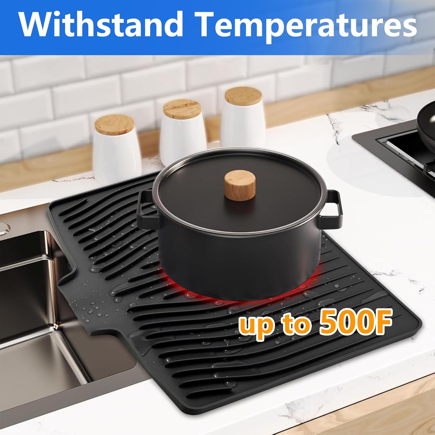 • Fast Drying: Silicone dish drying mats are designed with raised stripes to increase air circulation, which speeds up the drying process and allows your utensils to dry faster. The specially designed edges allow water to drain directly into the sink. This keeps your countertops dry