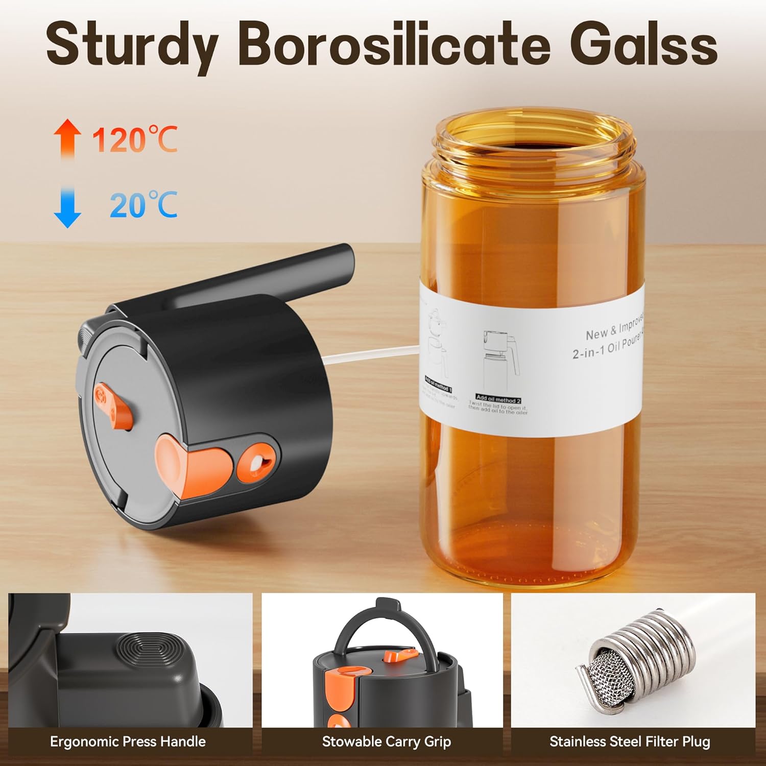 • Dual-Switch Upgrade: Moves beyond traditional sliding oil pour switches. Our press-button design is friendly to fingernail; And the spray switch integrates smoothly into the handle—enhancing both aesthetics and ease of cleaning.