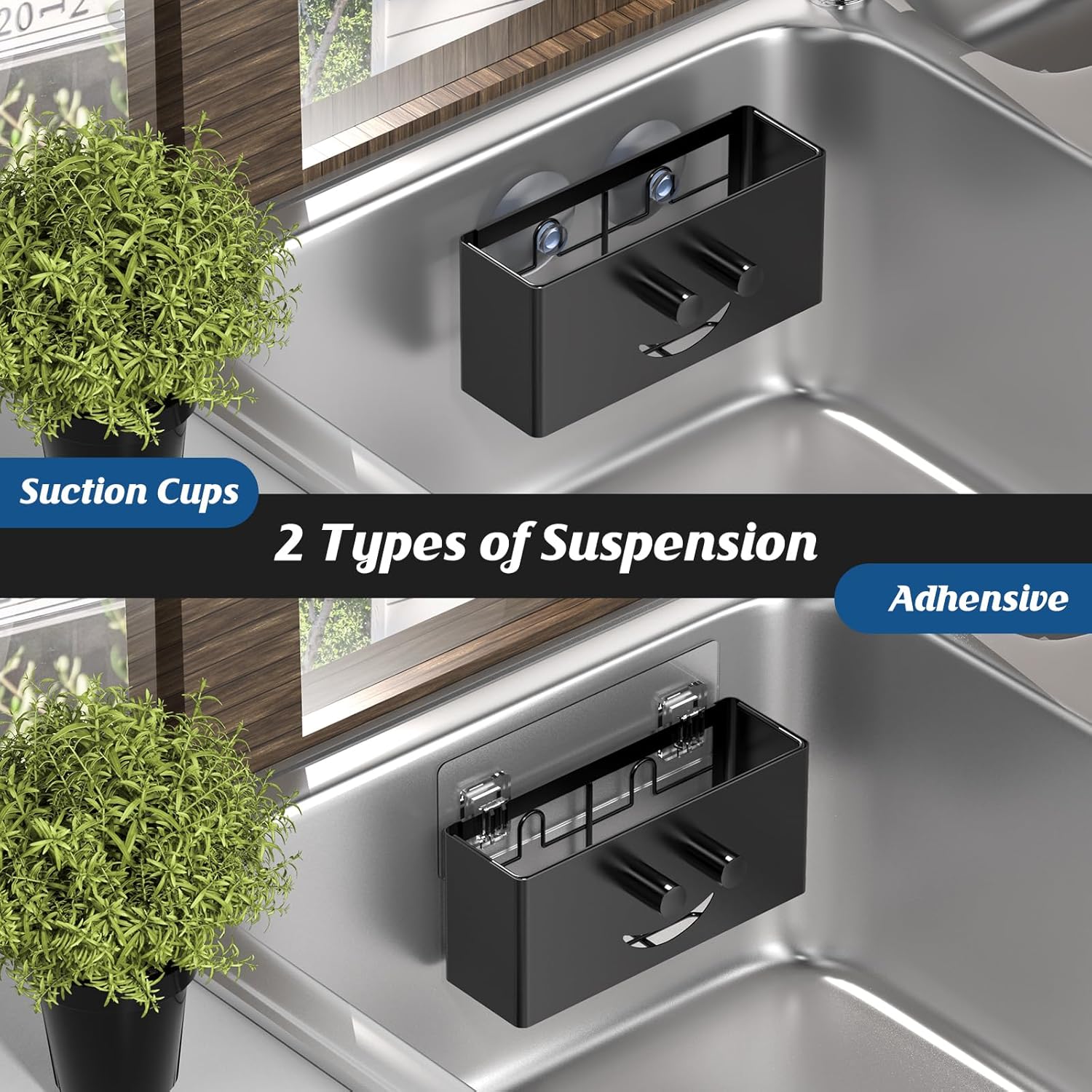 • 2 DIFFERENT INSTALLATION METHODS: The kitchen sink suction holder offer 2 installation methods(suction cups or adhesive hooks).The suction cups can be readily changed to a different mounting position and are suitable for smooth surfaces.Sticky adhesive is more stable (if you need to remove the adhesive, just heat it with a hot hair dryer)