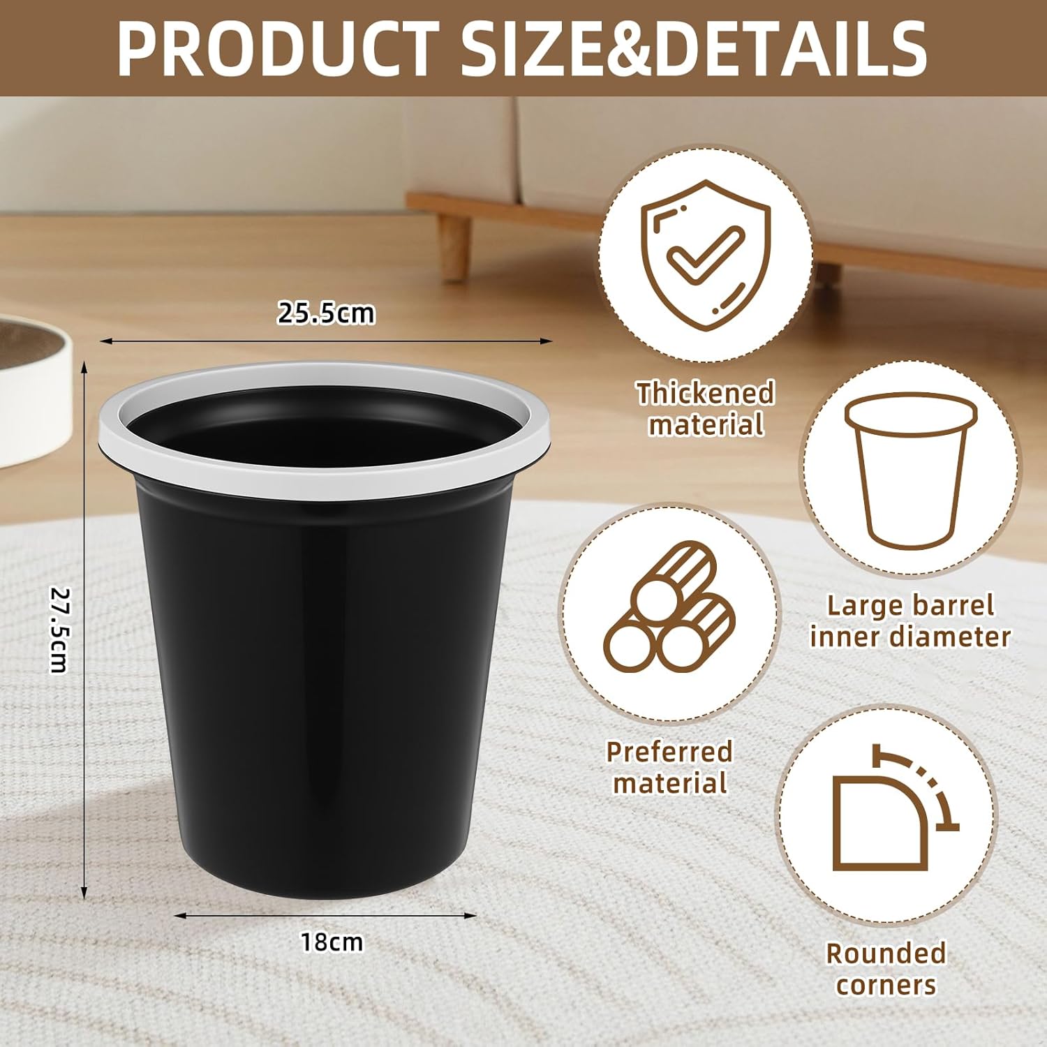 • Sufficient Quantity: the package contains 36 small black trash cans for bedroom, the quantity is enough to meet your daily use and replacement needs, you can put them in different bedrooms, toilets, kitchens, courtyards, etc