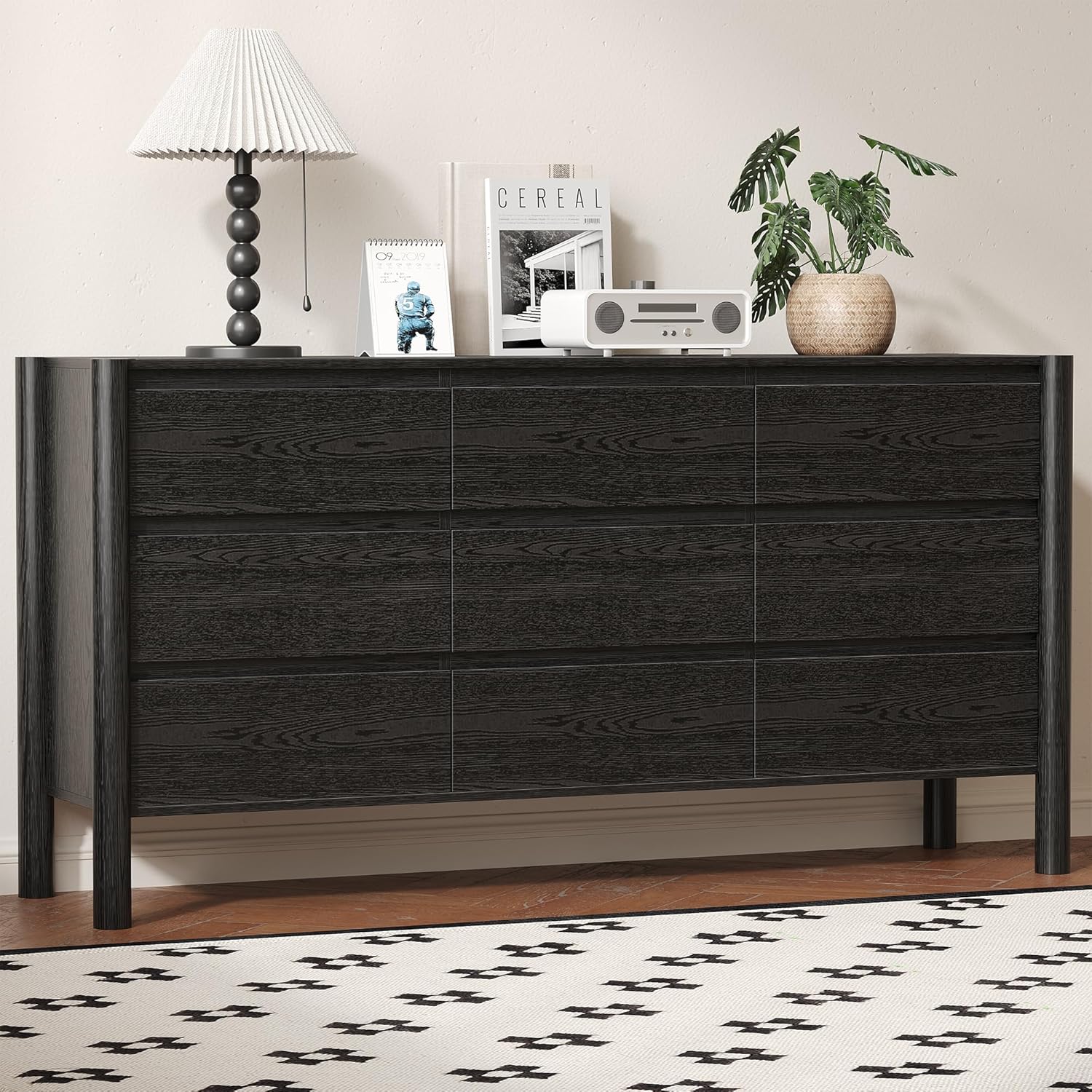 • 【Expansive & Organized Storage】The wooden dressers for bedroom features 9 large drawers, allowing each deep drawer to easily accommodate thick sweaters, bedding sets or accessory collections. The extra-wide cabinet expands the storage space by 30%, saying goodbye to clutter and achieving "visual invisible storage".