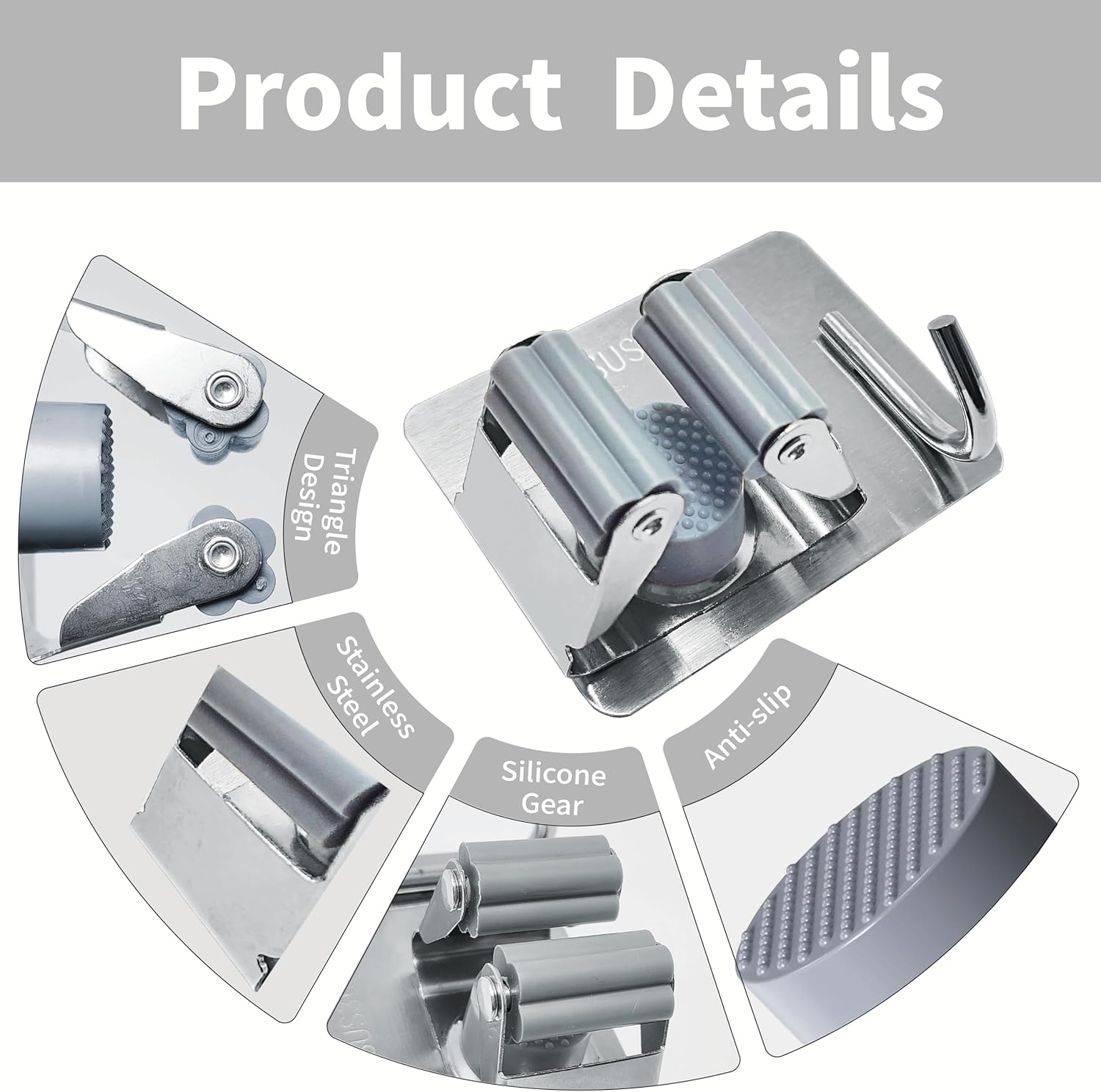 • Multi-purpose Storage: Self adhesive broom organizer wall mount is helpful to organize the mop, broom, umbrella, brush, shovel and other tools, keeping your home clean. The hooks can hang a variety of daily items, improving storage space.