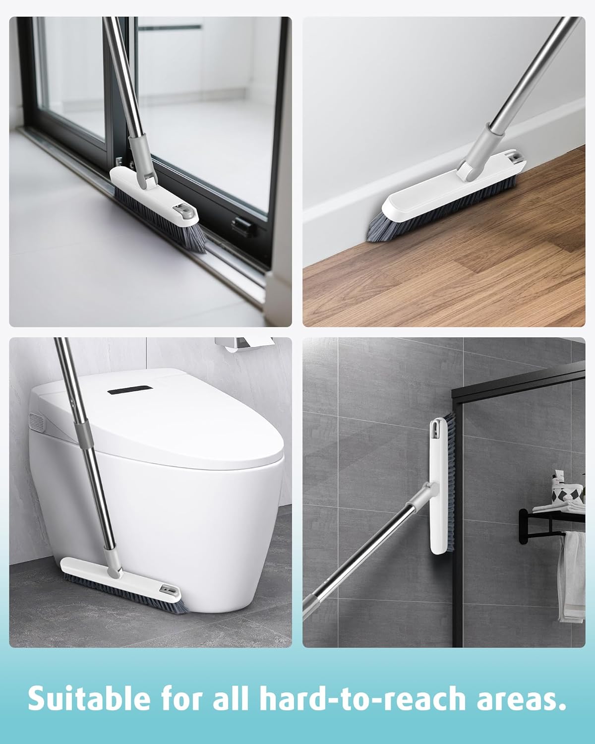 - Adjustable Stainless Steel Handle - Floor scrub brush comes with 4-section stainless steel poles. Telescopic Long handle ergonomic design save your back and knees, no more getting on your knees to scrub with a small brush,You can adjust the handle length from 16.5" to 50" by adding or removing the number of poles