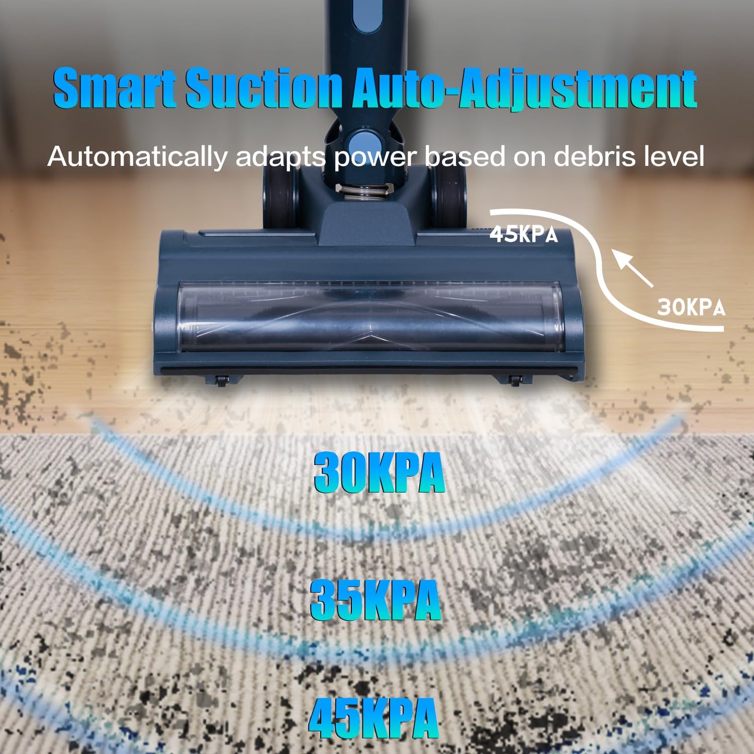 - 【Pro Tip】 - For maximum 45kPa suction power and full 15-55min runtime, please fully charge the stick vacuum cleaner before first use (shipped at <30% for safety). rinse and air-dry the filter completely to maintain peak performance - especially important for pet hair and deep carpet cleaning