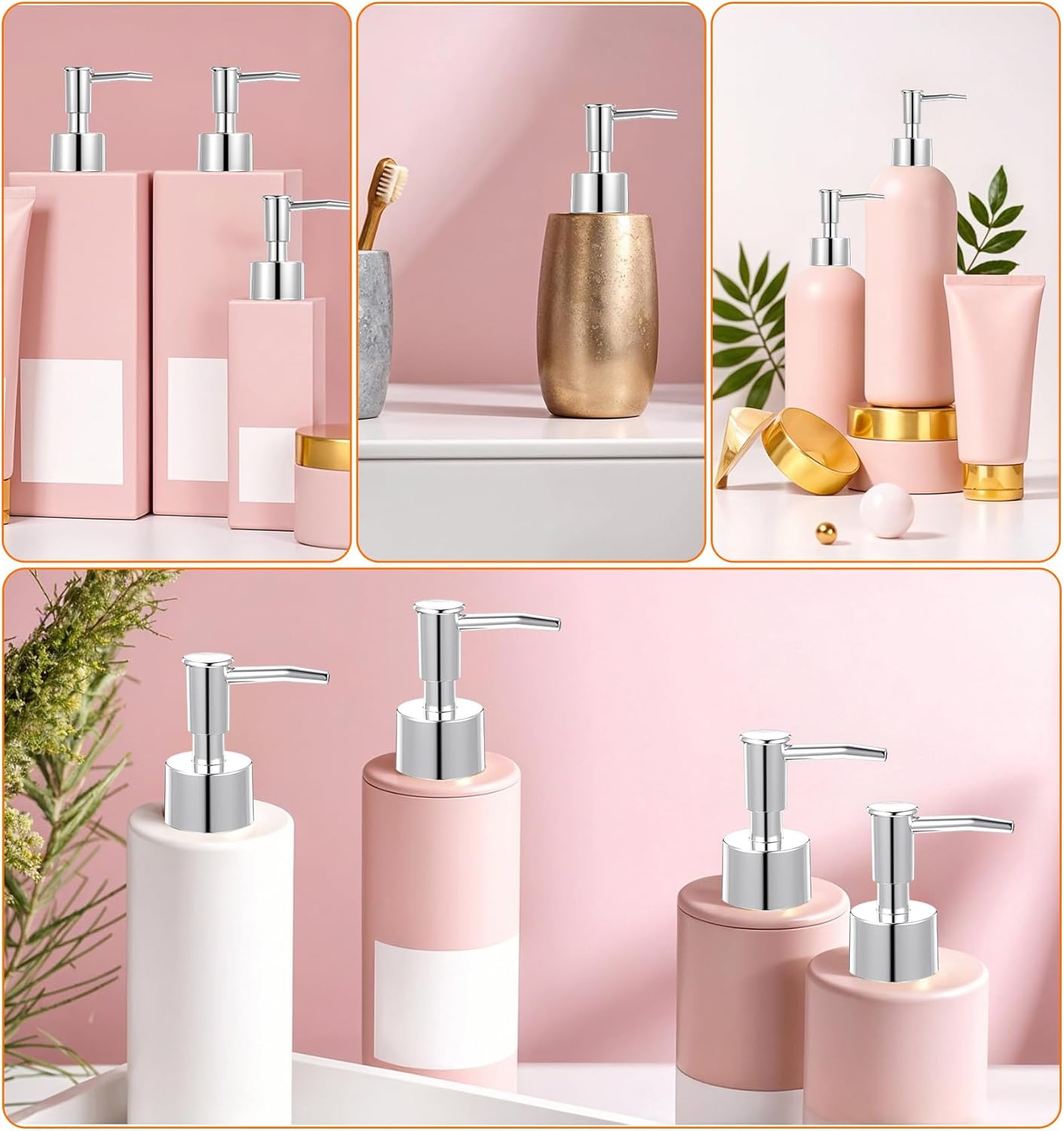 • Complete Set - Includes 4 silver hand soap pump replacement with tubes (6-inch length); upgrade multiple bottles in bathrooms or kitchens with these leak-proof universal dispensers