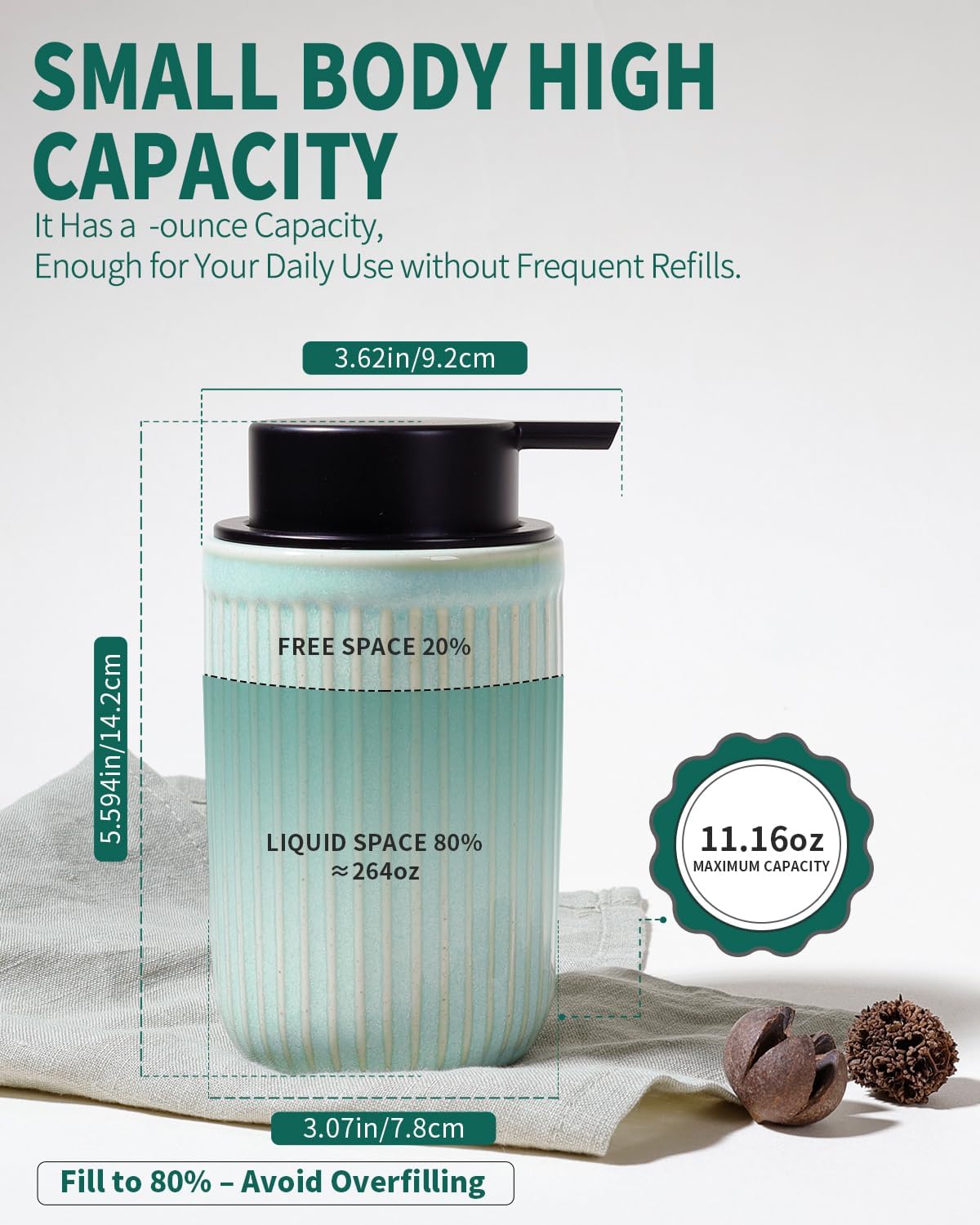 • Reusable Dispenser: The foam dispenser is made of high-quality ceramic, durable & lead-free. Thick matte porcelain surface, which is more comfortable. It' s safe to use and easy to clean