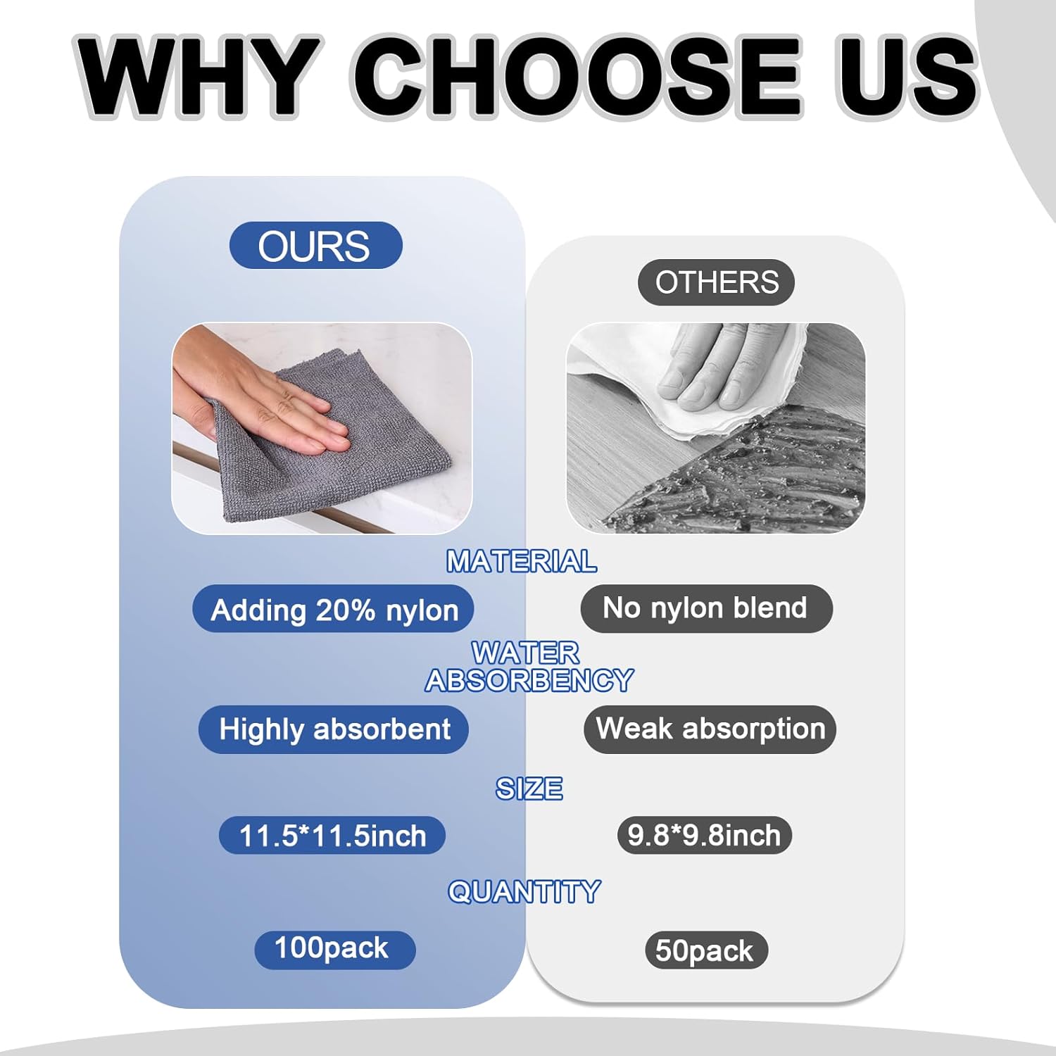 - Upgraded Material Formula Outperforms Competitors: Unlike standard 100% polyester cloths, our 80/20 polyester-nylon blend significantly enhances durability, absorbency, and lint resistance. It efficiently traps dirt and dries quickly, reducing waste and boosting cleaning efficiency.