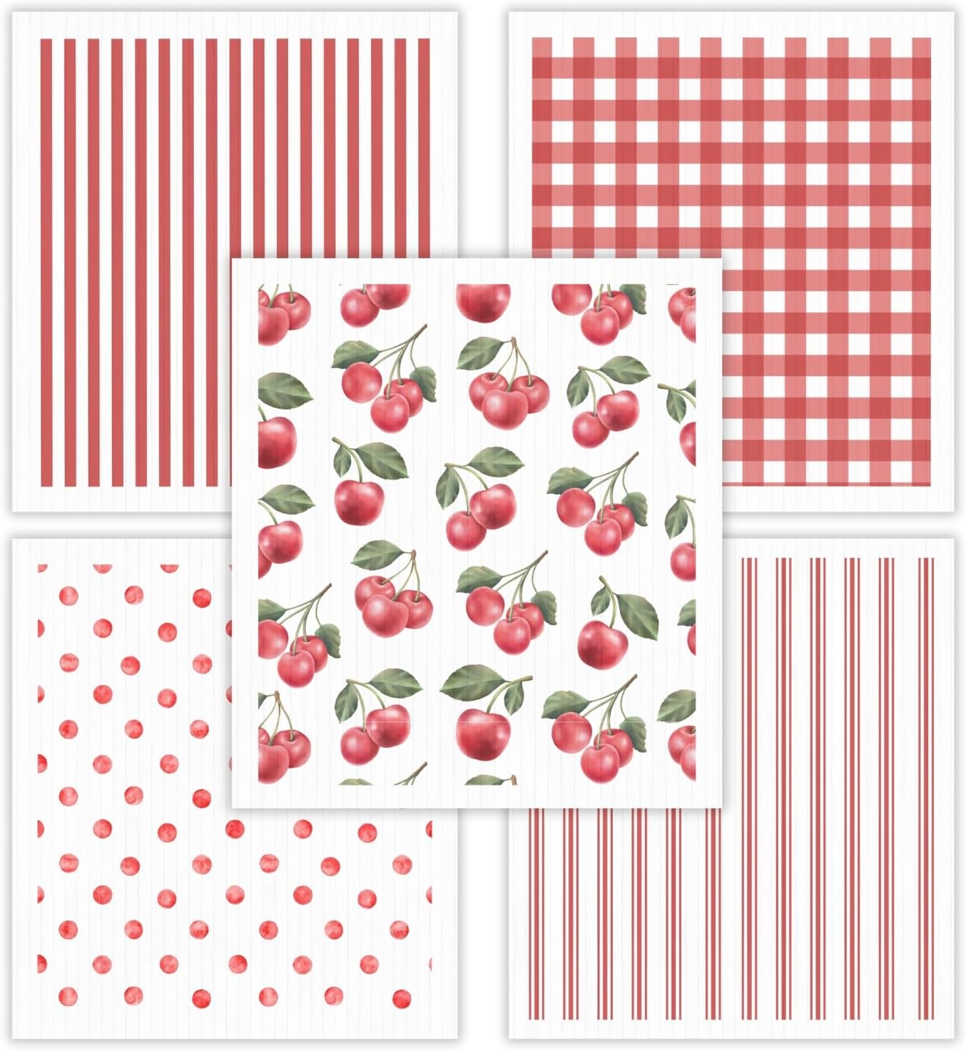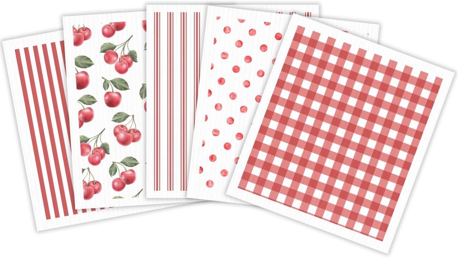 HALL & PERRY Swedish Dishcloths for Kitchen, 5-Pack, Reusable Cellulose Sponge Cloths for Kitchen & Cleaning – Eco-Friendly, Ultra-Absorbent, Quick-Drying (Cherry Red)