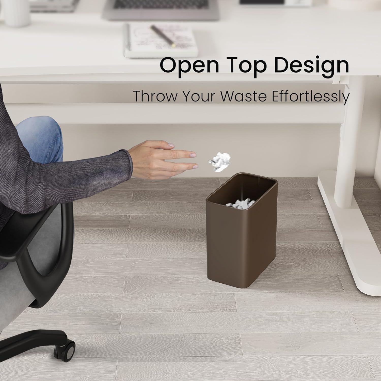 • Compact Size for Tight Spaces: With dimensions of 8.86''L x 5.51''W x 10.16''H, this 2.1-gallon (8-liter) brown trash can is purposefully small, perfect for limited spaces where larger bins may not fit. Ideal for light use, it’s a discreet waste solution for bathrooms, under sinks, under desks, nside cabinets, and narrow areas, ensuring you make the most of every inch