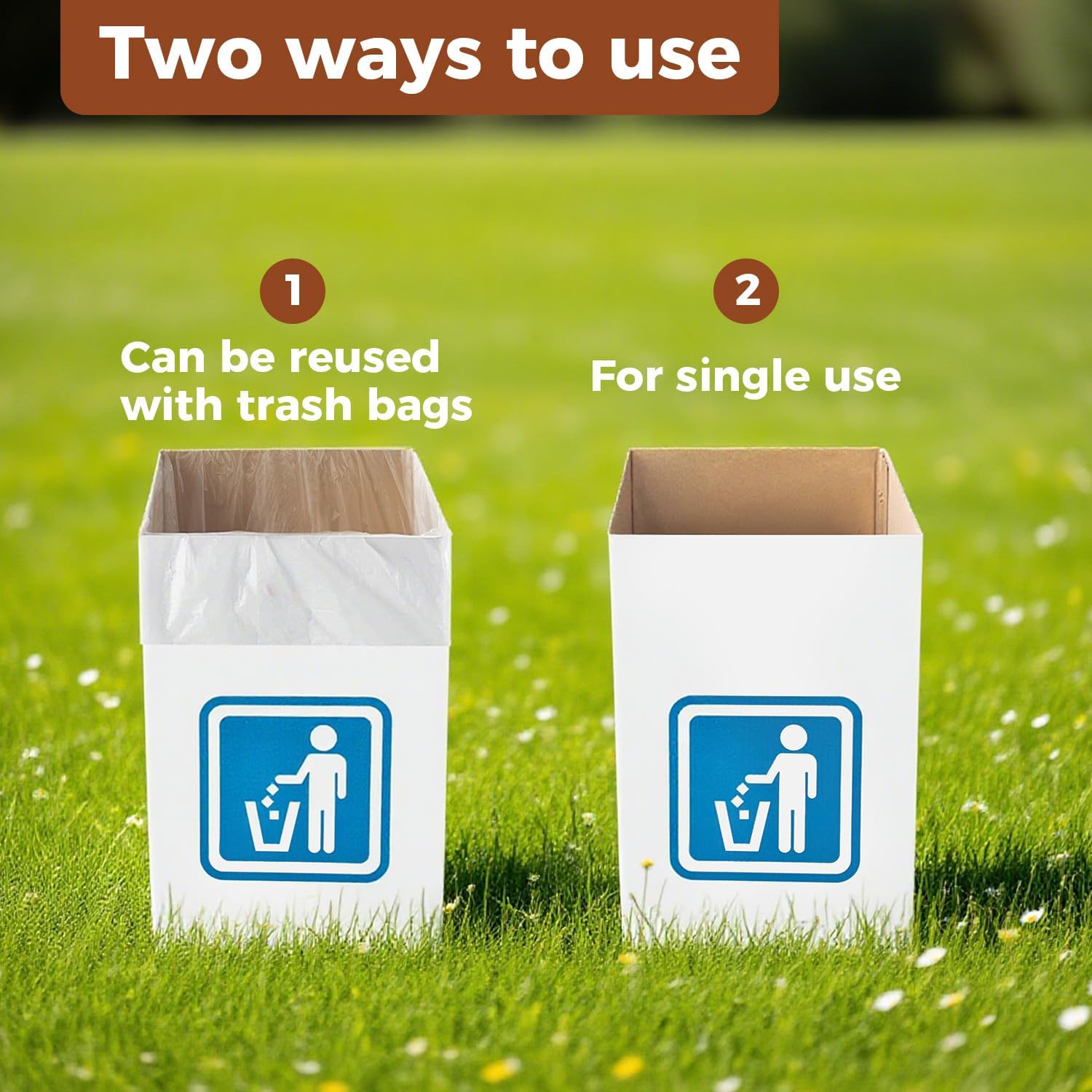 • STURDY & ECO-FRIENDLY MATERIAL:Made from high-quality recycled cardboard, these trash cans are both durable and planet-conscious. Each pack includes 10 bins + 20 disposable bags — a complete cleanup kit that supports sustainable living.
