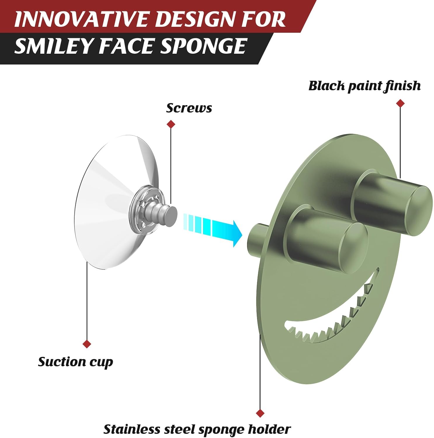 • EASY INSTALLATION:The suction cup sink caddy don't need tools or drilling, the screws and suction cups are integrated. Lease clean the sink and keep it dry before installation. Then, simply rinse the suction cups and press the sponge holder to the surface of the sink and squeezing out the air to hold it firmly in place. Just put your smiley sponge on the sponge holder