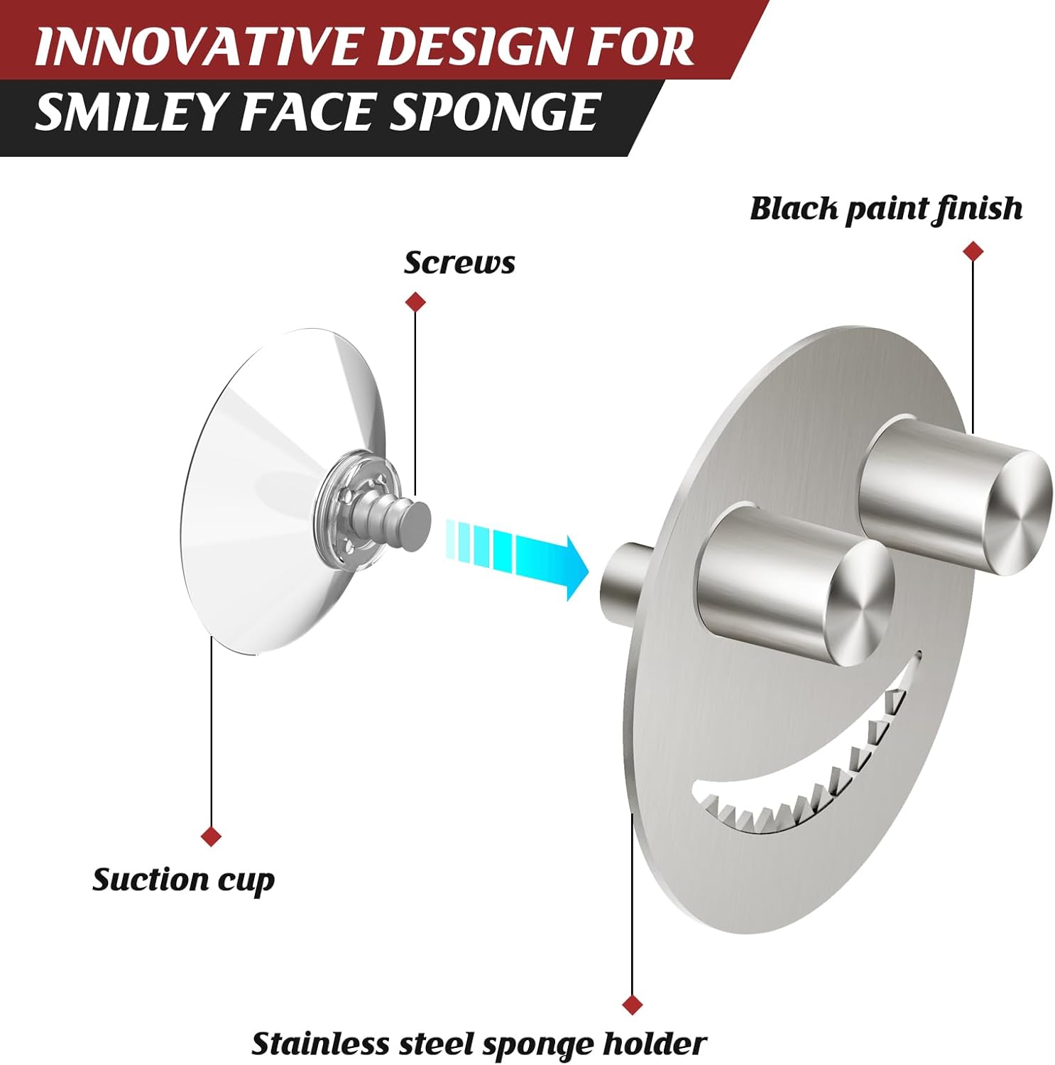 • EASY INSTALLATION:The suction cup sink caddy don't need tools or drilling, the screws and suction cups are integrated. Lease clean the sink and keep it dry before installation.Then, simply rinse the suction cups and press the sponge holder to the surface of the sink and squeezing out the air to hold it firmly in place.Just put your smiley sponge on the sponge holder