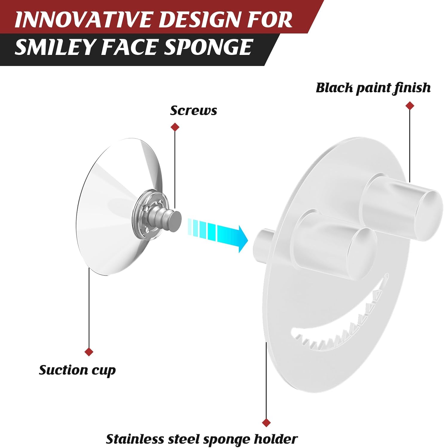 • VENTILATED AND EASY TO DRY: This sink caddy installation with a certain distance from the wall or sink space can greatly increase air convection.The sink sponge holder with suction cups allows your smiley kitchen sponge to drain and air dry quickly, reducing odors and keeping the sponge the same as before