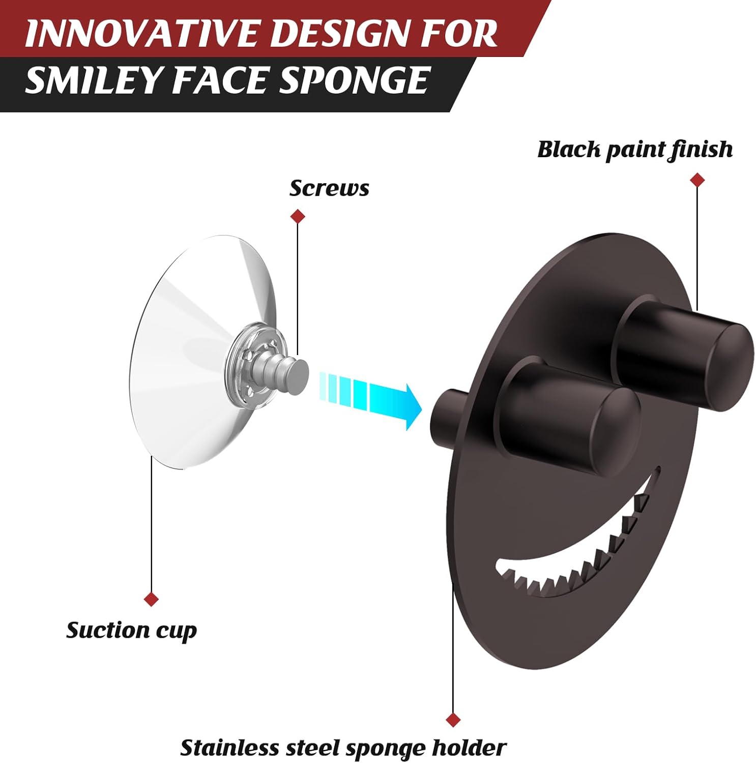 • VENTILATED AND EASY TO DRY: This sink caddy installation with a certain distance from the wall or sink space can greatly increase air convection.The sink sponge holder with suction cups allows your smiley kitchen sponge to drain and air dry quickly, reducing odors and keeping the sponge the same as before