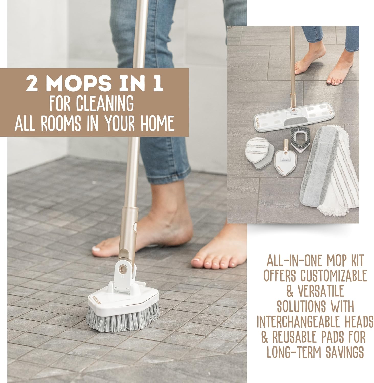 - Two Mops in One – Customizable Cleaning Power: Easily switch between interchangeable flat and triangular mop heads to dust, clean and polish open areas, baseboards, corners, and tight spots with precision using the included 16oz Quick Shine Multi-Surface Floor Cleaner and Floor Finish
